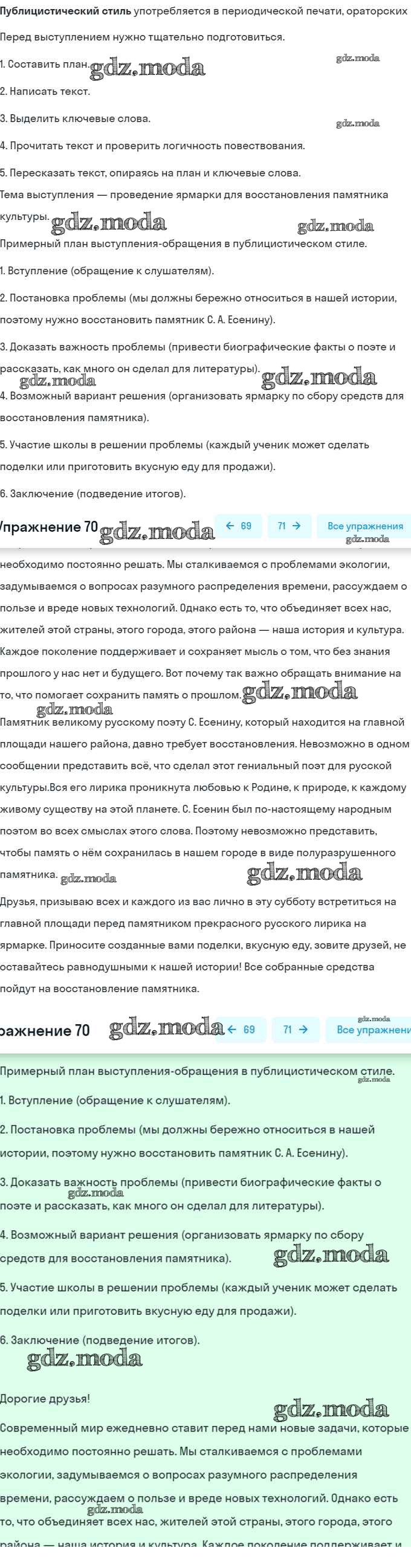 ОТВЕТ на задание № 70 Учебник по Русскому языку 7 класс Баранов