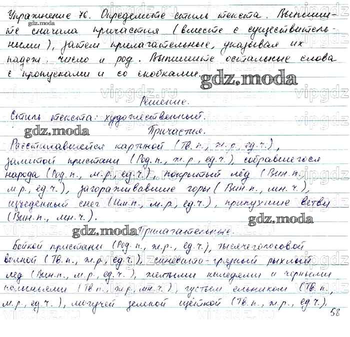 ОТВЕТ на задание № 76 Учебник по Русскому языку 7 класс Баранов УМК