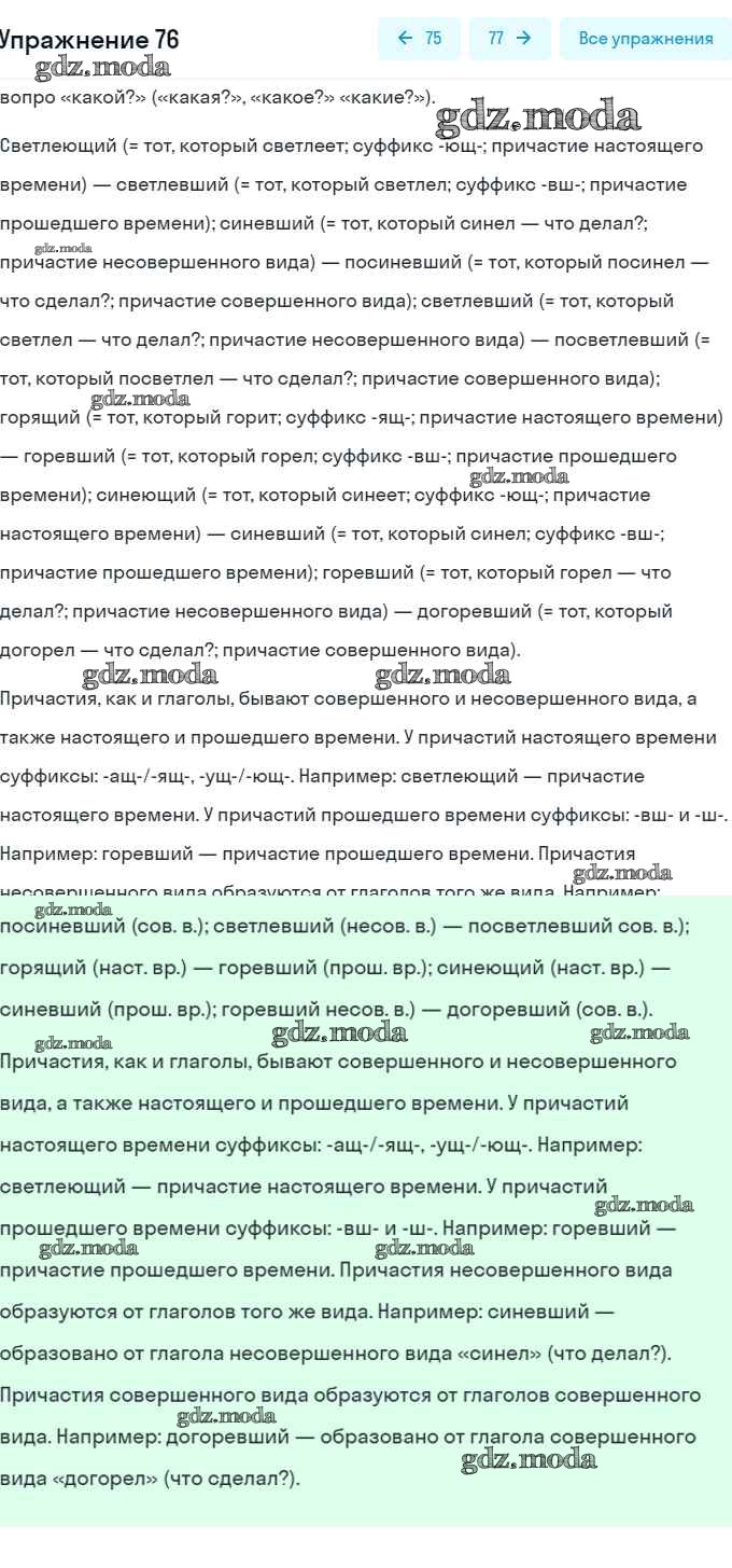 ОТВЕТ на задание № 76 Учебник по Русскому языку 7 класс Баранов