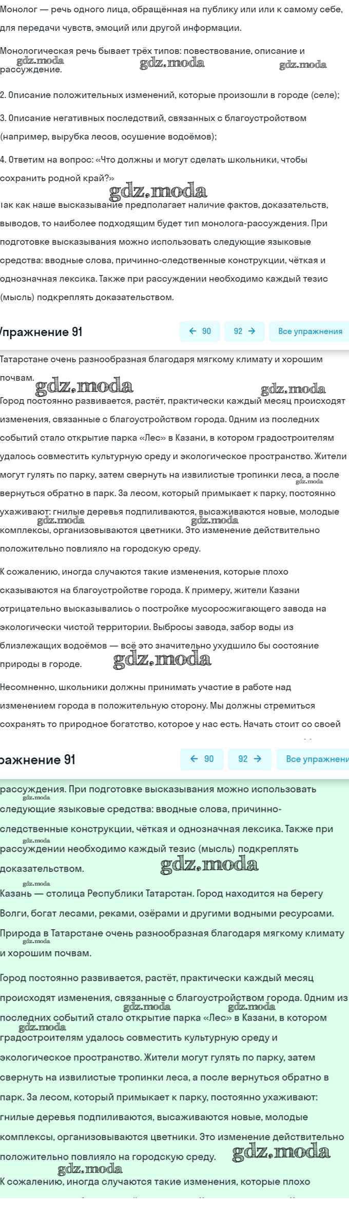 ОТВЕТ на задание № 91 Учебник по Русскому языку 7 класс Баранов
