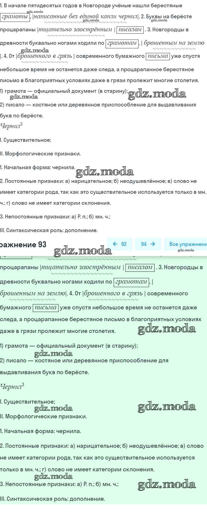 ОТВЕТ на задание № 93 Учебник по Русскому языку 7 класс Баранов