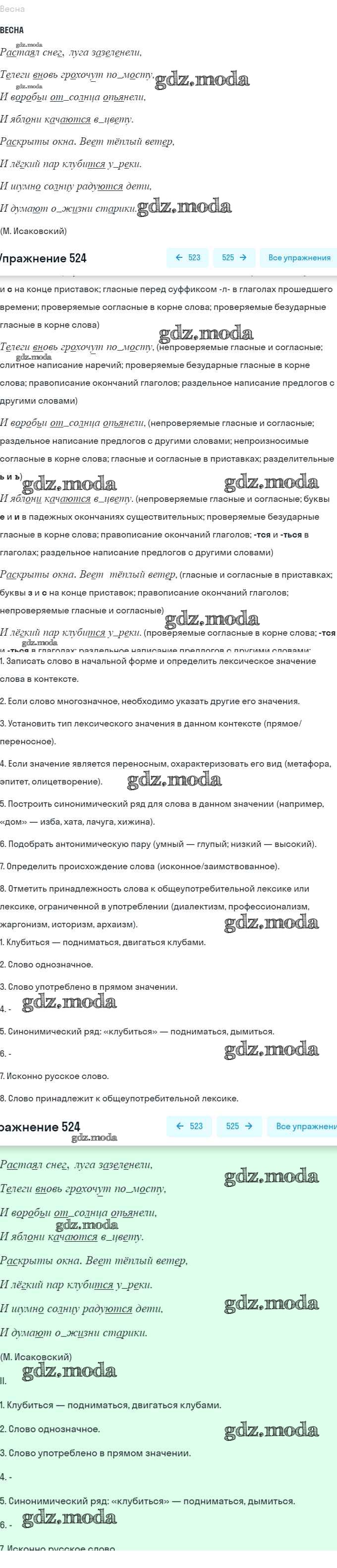ОТВЕТ на задание № 524 Учебник по Русскому языку 7 класс Баранов