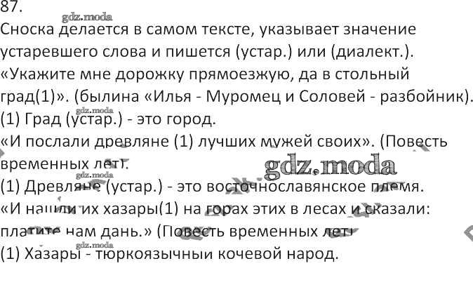 ОТВЕТ на задание № 87 Учебник по Русскому языку 7 класс Львова УМК