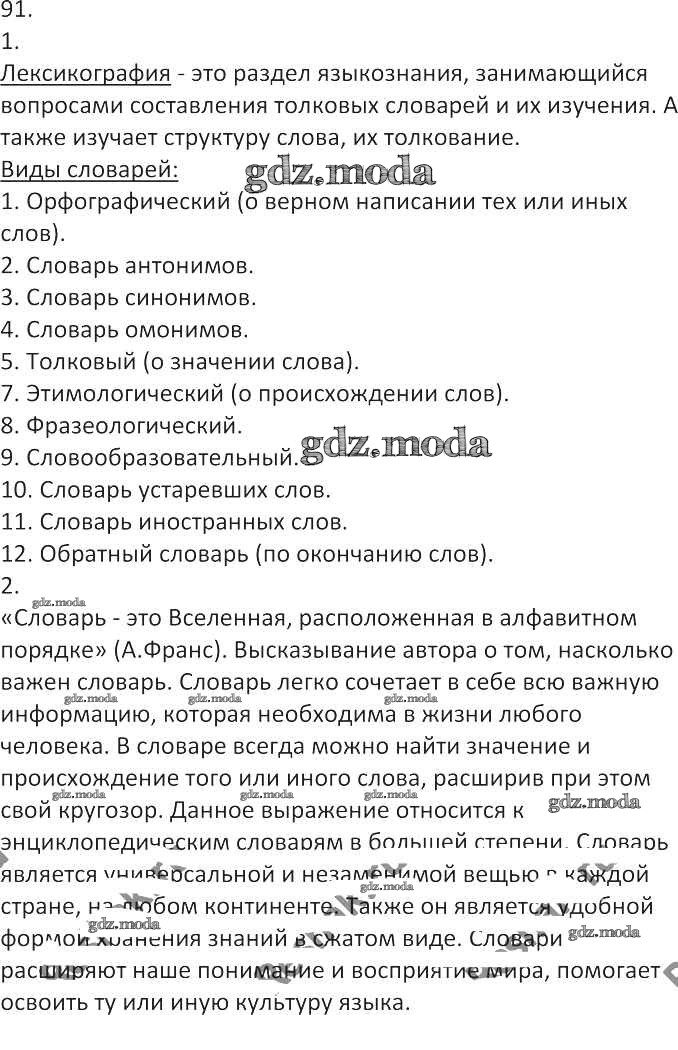 ОТВЕТ на задание № 91 Учебник по Русскому языку 7 класс Львова УМК