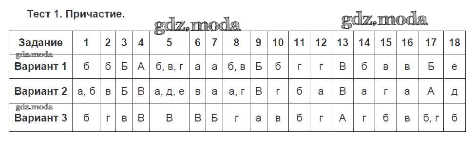 ГДЗ решение к заданию № Тест №1. Причастие Русский язык 7 класс тестовые задания Малюшкин А.Б. Сфера 2020 ФГОС бесплатно на гдз.мода!