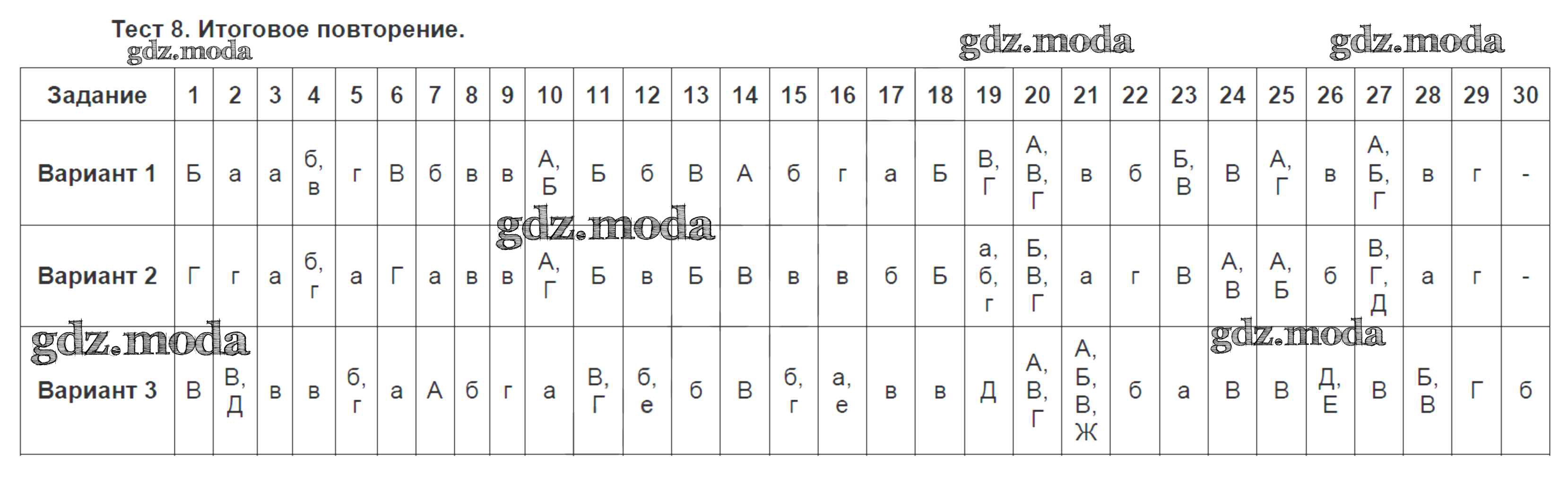 ГДЗ решение к заданию № Тест №8. Итоговое повторение Русский язык 7 класс тестовые задания Малюшкин А.Б. Сфера 2020 ФГОС бесплатно на гдз.мода!