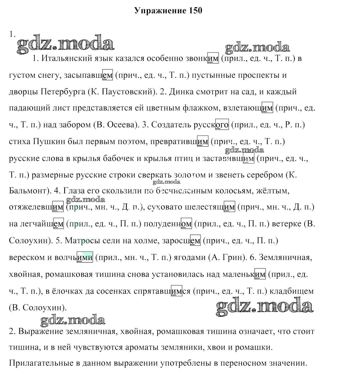 ОТВЕТ на задание № 150 Учебник по Русскому языку 7 класс Мурина