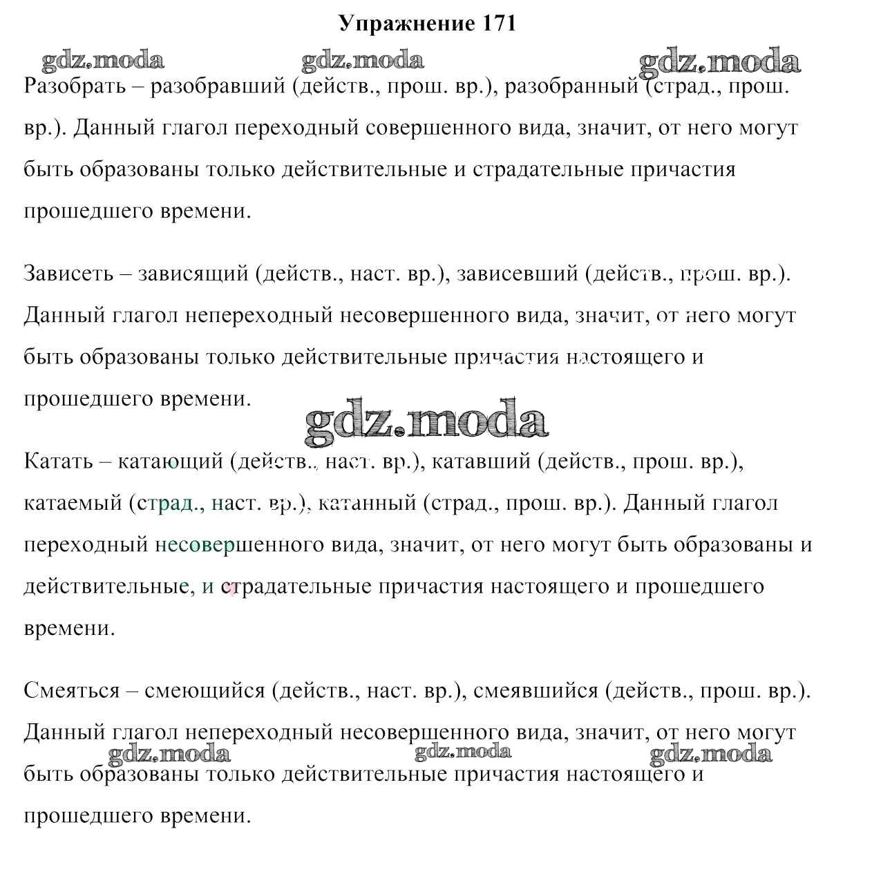 ОТВЕТ на задание № 171 Учебник по Русскому языку 7 класс Мурина