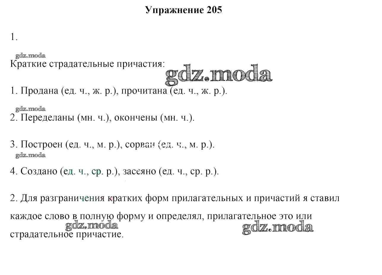 ОТВЕТ на задание № 205 Учебник по Русскому языку 7 класс Мурина