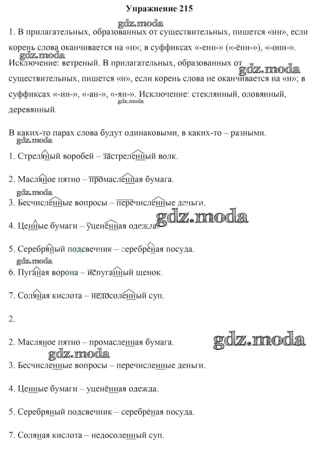 ГДЗ решение к заданию № 215 Русский язык 7 класс Мурина Л.A Национальный институт образования 2015 ФГОС бесплатно на гдз.мода!