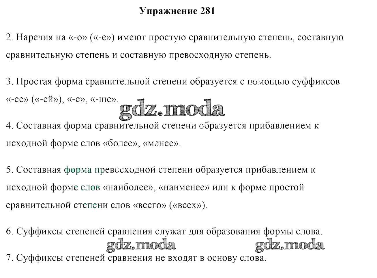 ОТВЕТ на задание № 281 Учебник по Русскому языку 7 класс Мурина