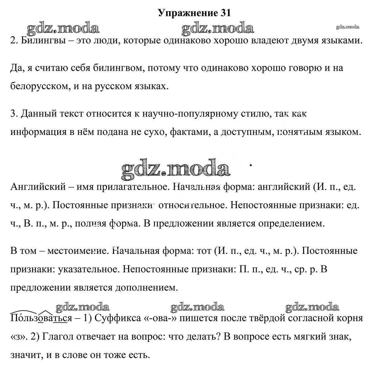 ГДЗ решение к заданию № 31 Русский язык 7 класс Мурина Л.A Национальный институт образования 2015 ФГОС бесплатно на гдз.мода!