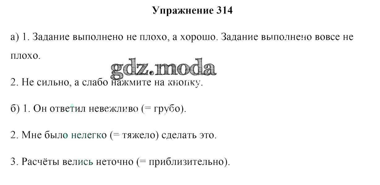 ГДЗ решение к заданию № 314 Русский язык 7 класс Мурина Л.A Национальный институт образования 2015 ФГОС бесплатно на гдз.мода!