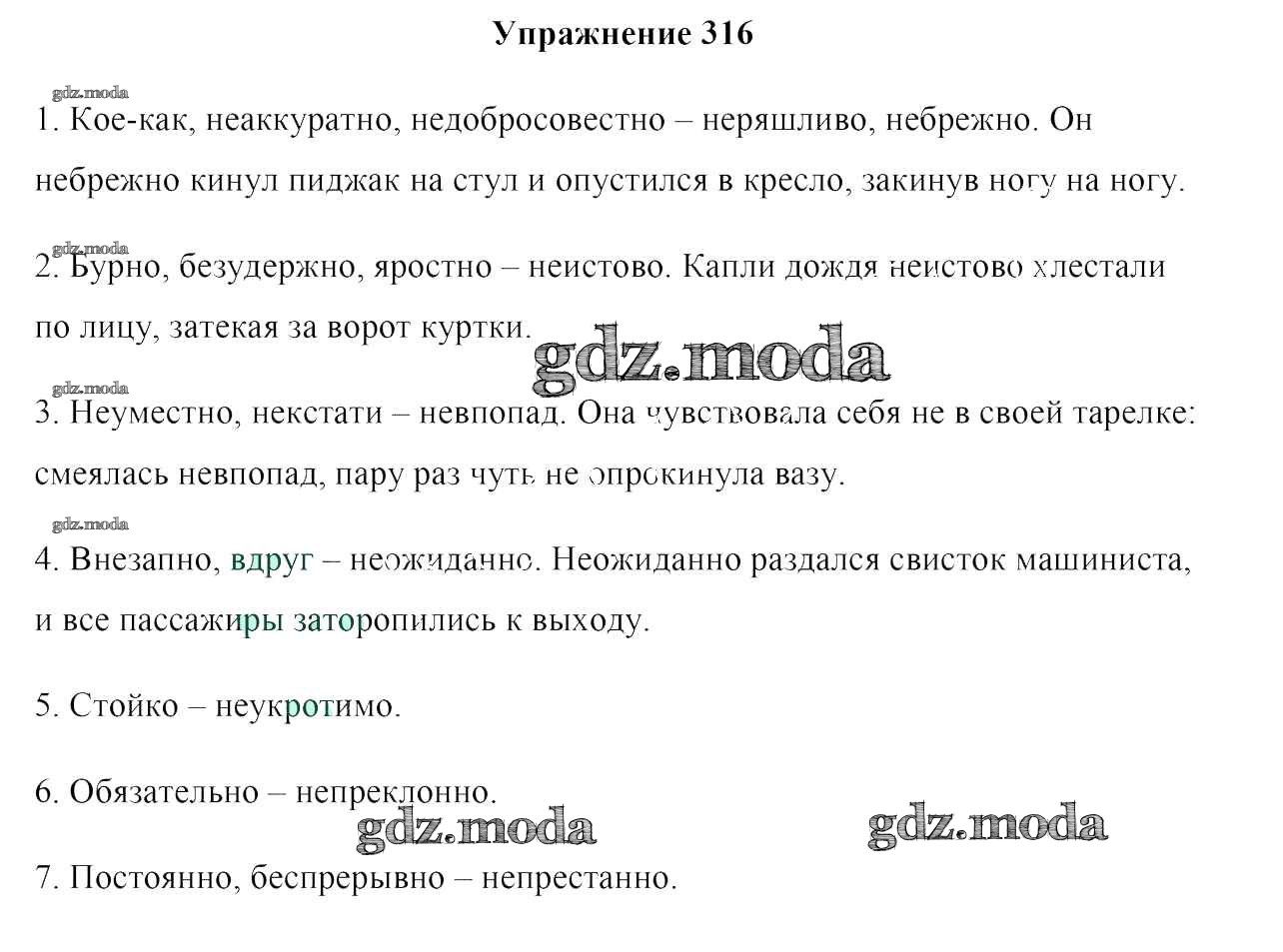 ОТВЕТ на задание № 316 Учебник по Русскому языку 7 класс Мурина