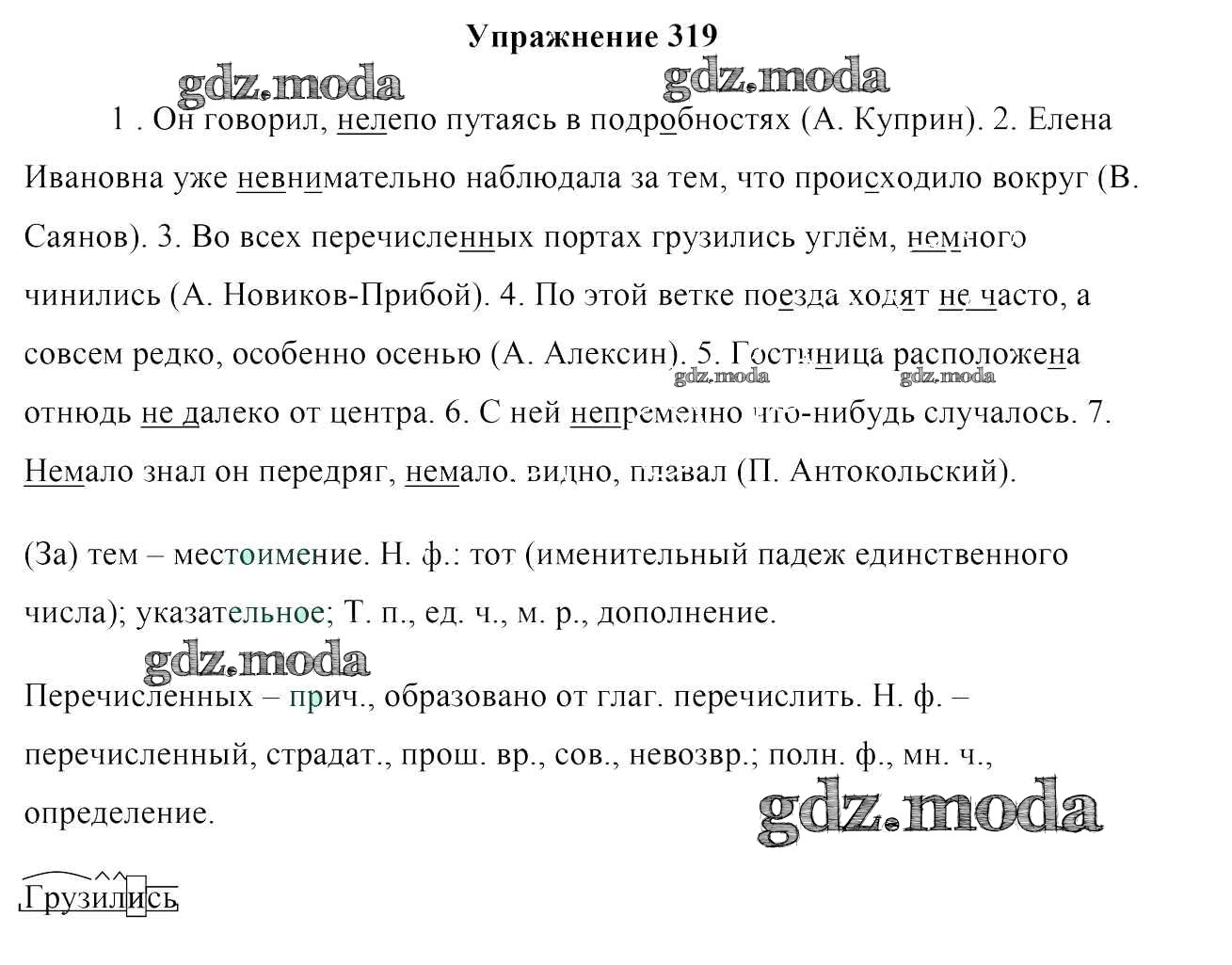 ОТВЕТ на задание № 319 Учебник по Русскому языку 7 класс Мурина