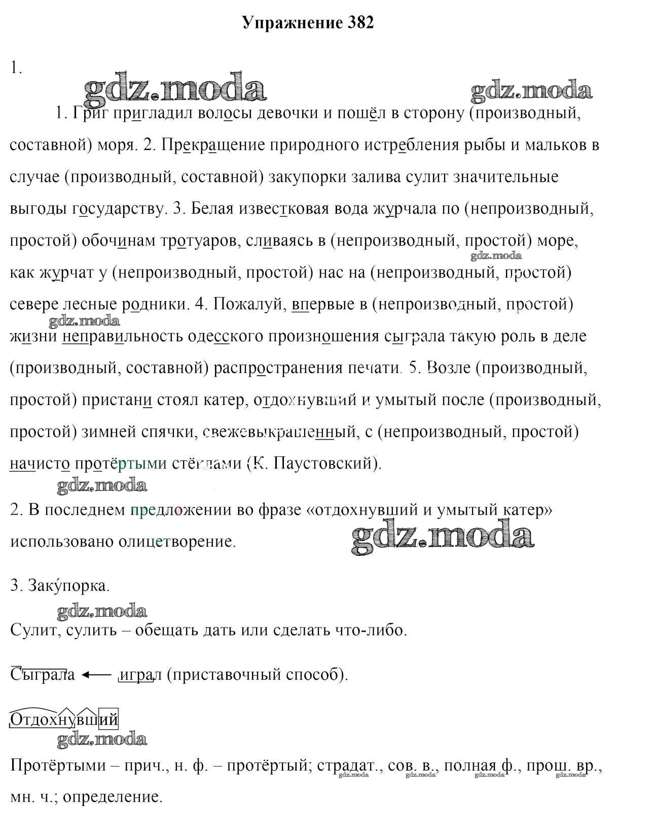 ОТВЕТ на задание № 382 Учебник по Русскому языку 7 класс Мурина