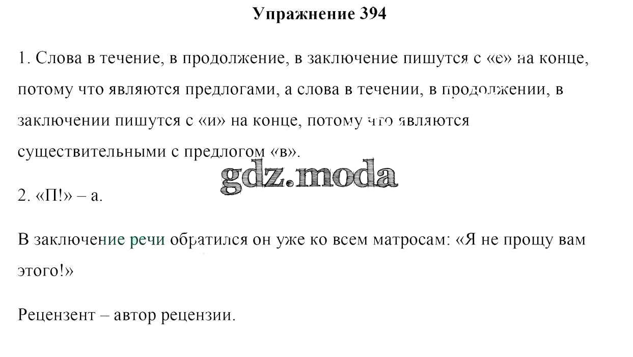 ОТВЕТ на задание № 394 Учебник по Русскому языку 7 класс Мурина