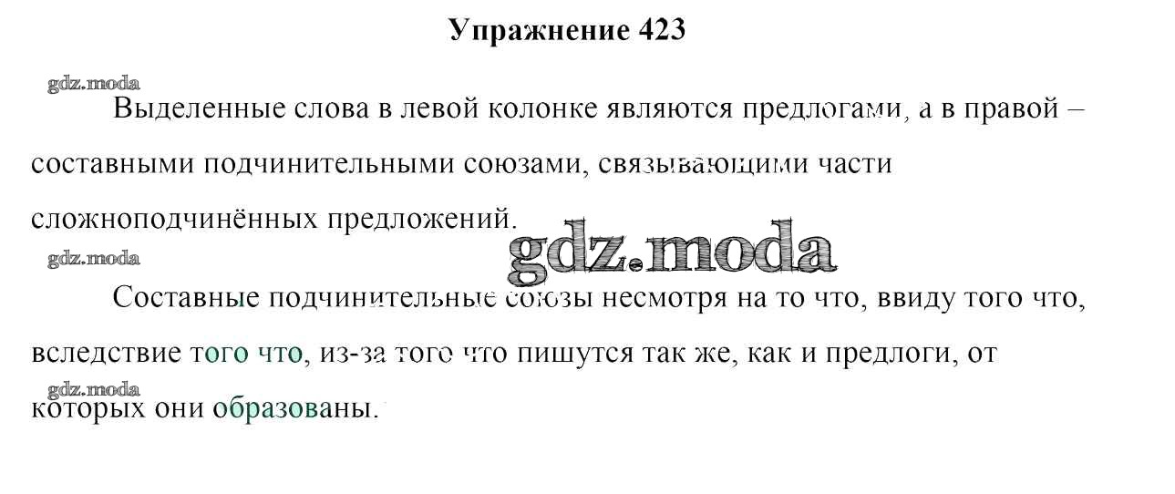 ОТВЕТ на задание № 423 Учебник по Русскому языку 7 класс Мурина