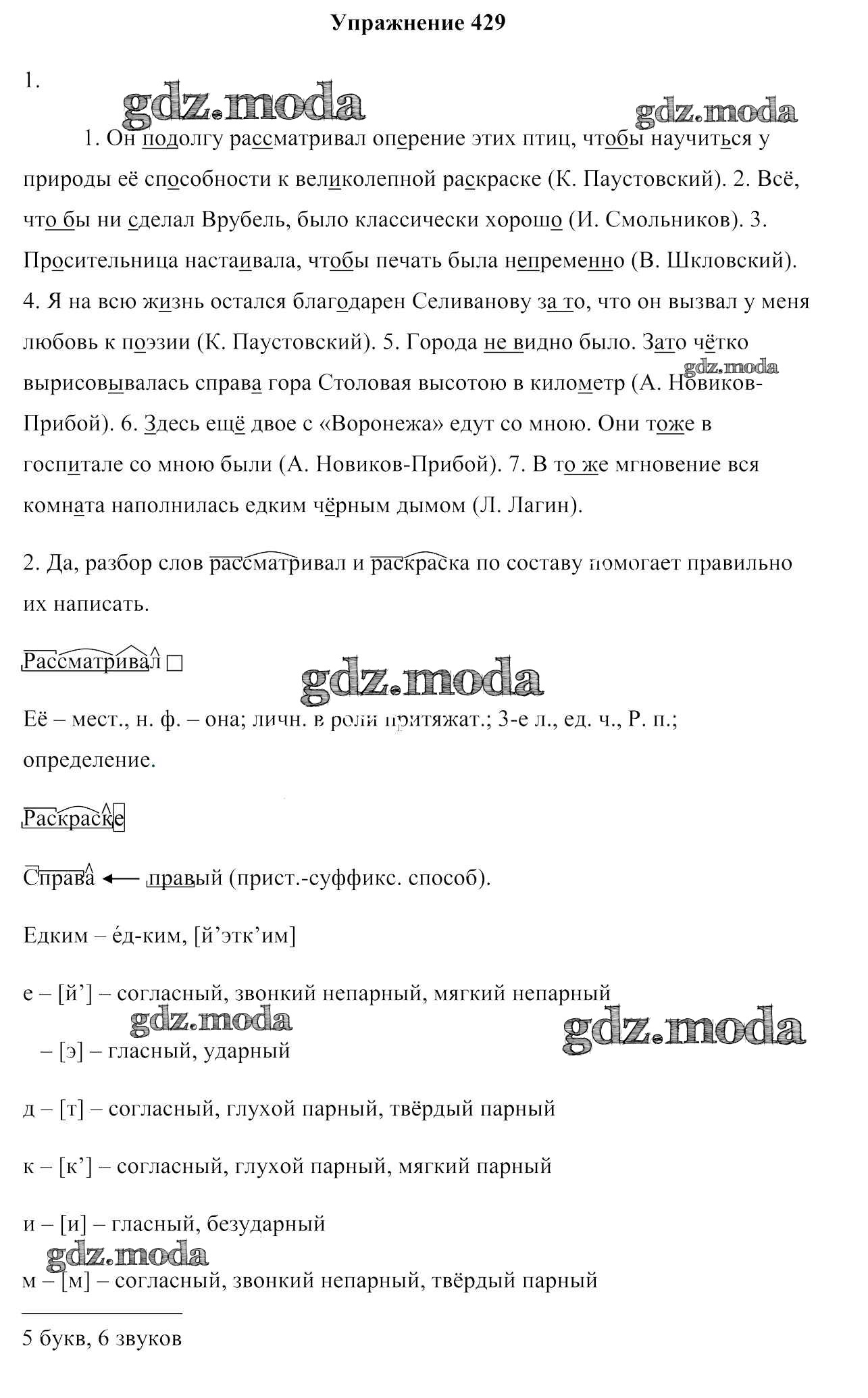 ОТВЕТ на задание № 429 Учебник по Русскому языку 7 класс Мурина