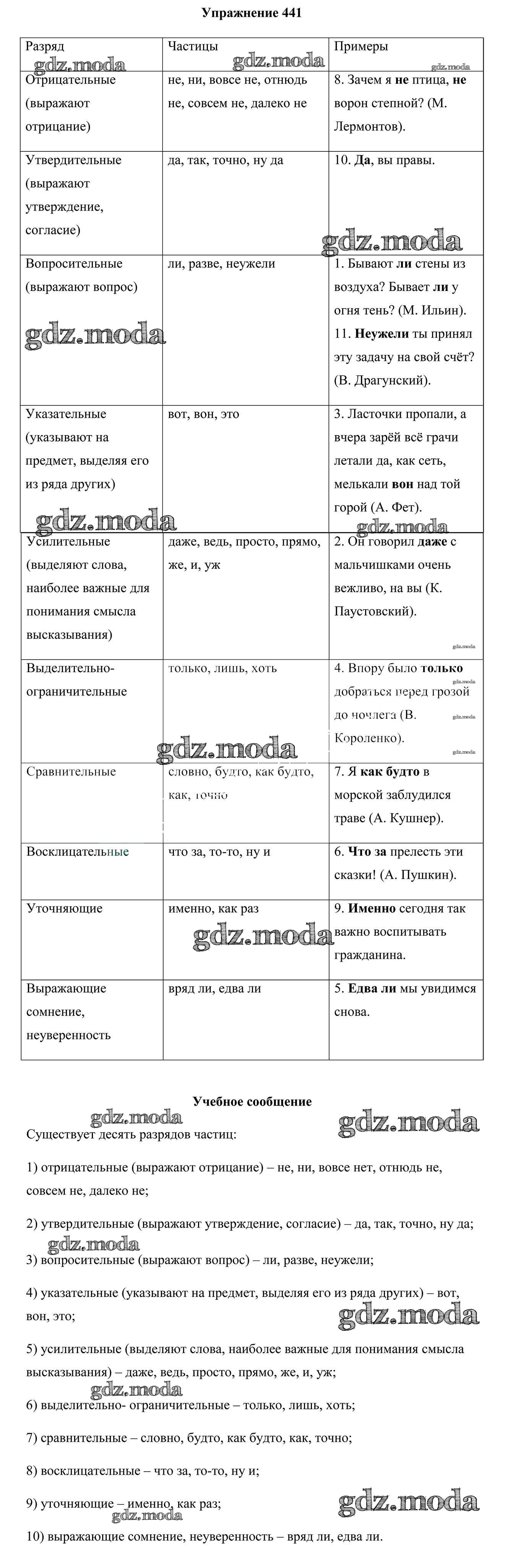 ГДЗ решение к заданию № 441 Русский язык 7 класс Мурина Л.A Национальный институт образования 2015 ФГОС бесплатно на гдз.мода!