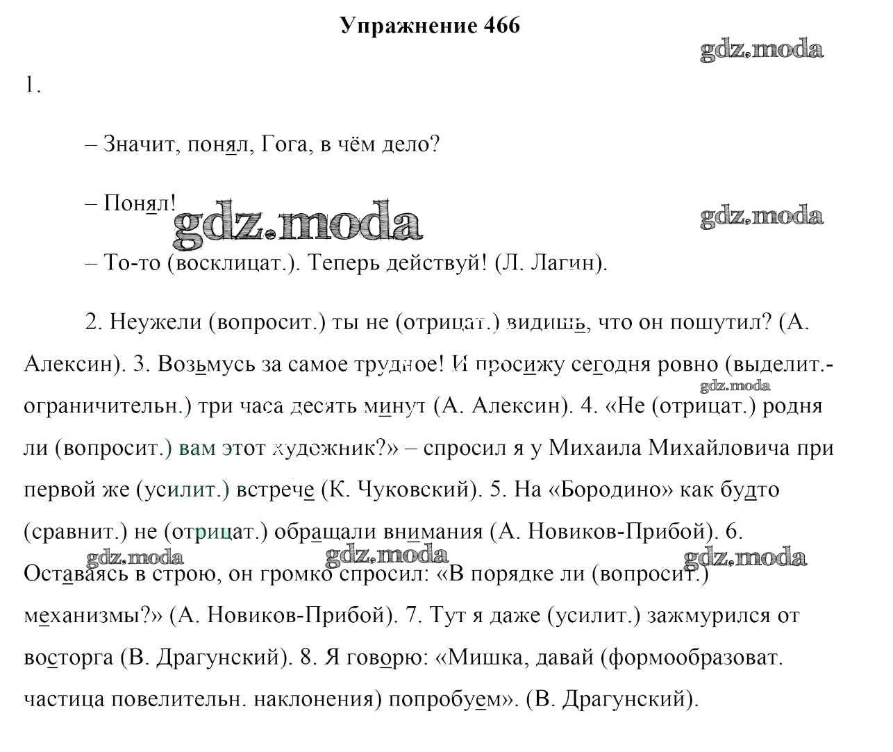ОТВЕТ на задание № 466 Учебник по Русскому языку 7 класс Мурина