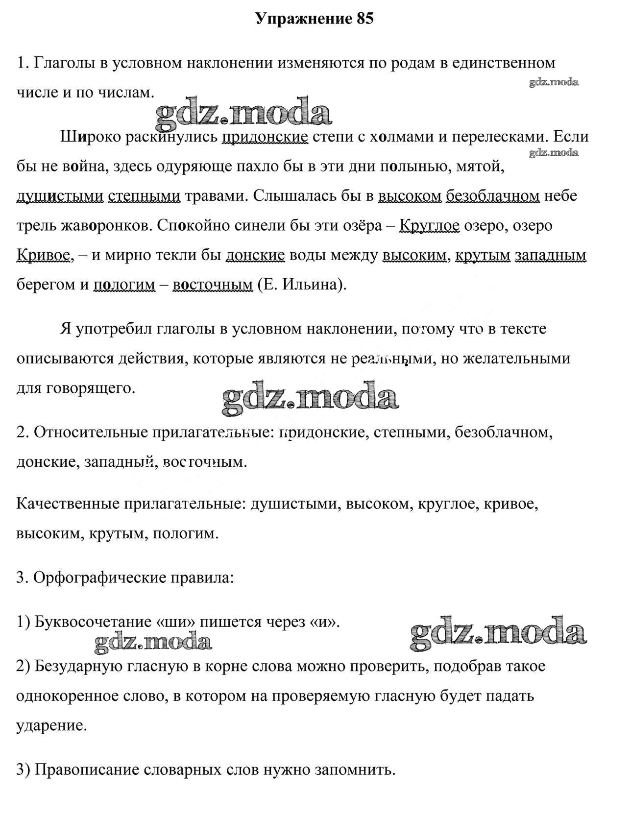 ГДЗ решение к заданию № 85 Русский язык 7 класс Мурина Л.A Национальный институт образования 2015 ФГОС бесплатно на гдз.мода!