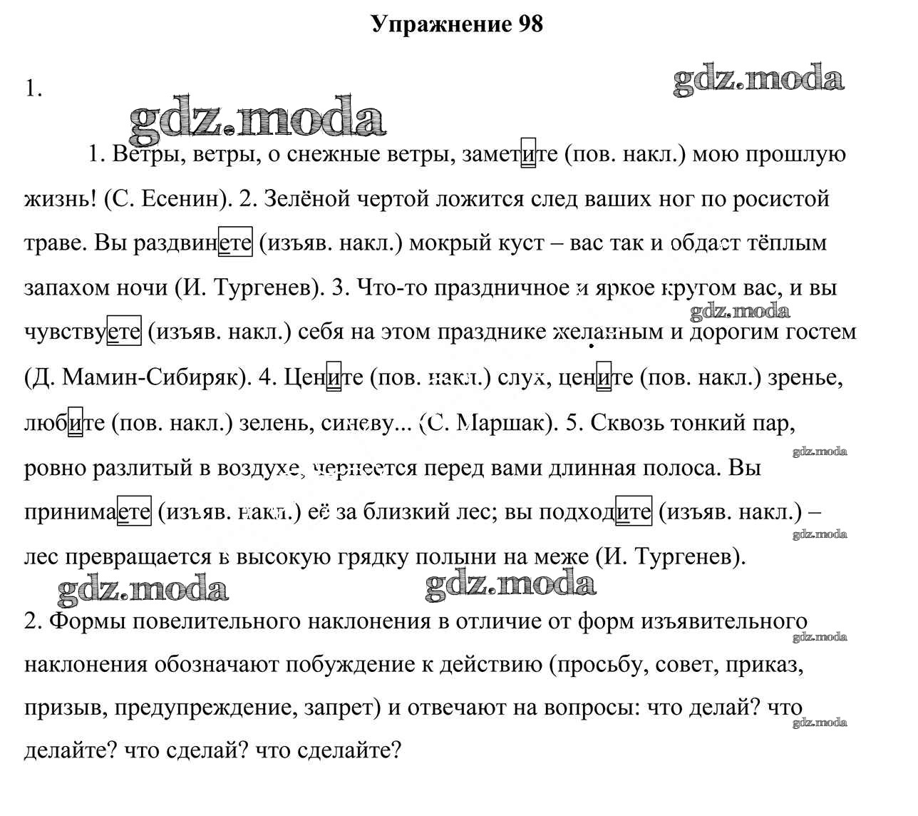 ГДЗ решение к заданию № 98 Русский язык 7 класс Мурина Л.A Национальный институт образования 2015 ФГОС бесплатно на гдз.мода!