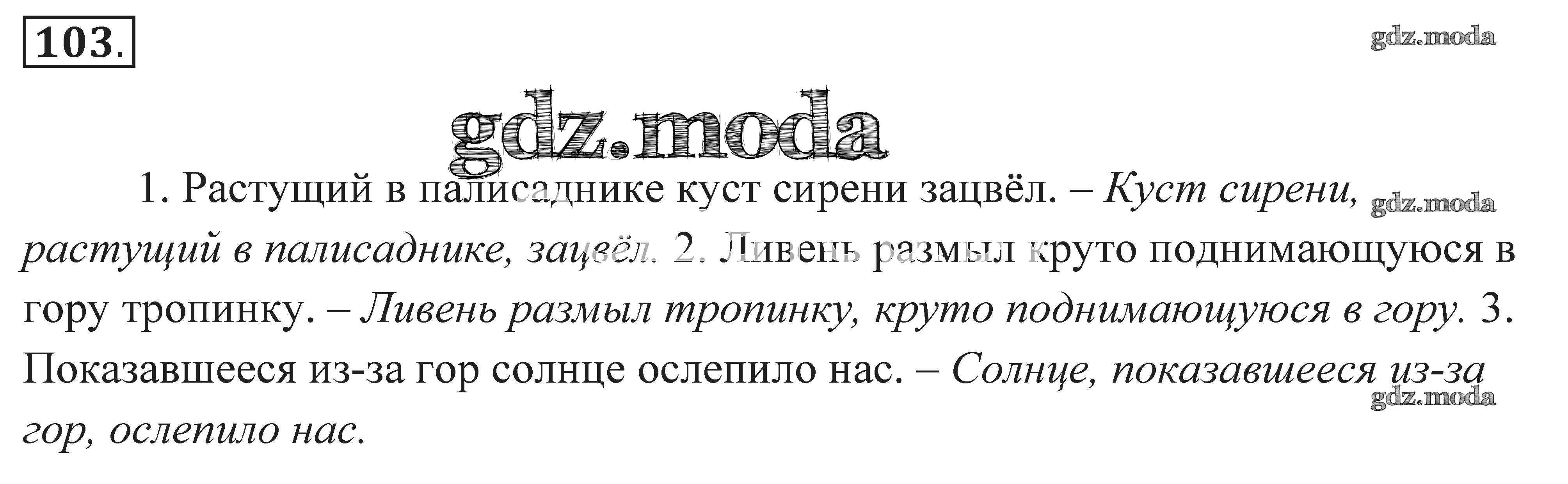 ОТВЕТ на задание № 103 Практика по Русскому языку 7 класс Пименова