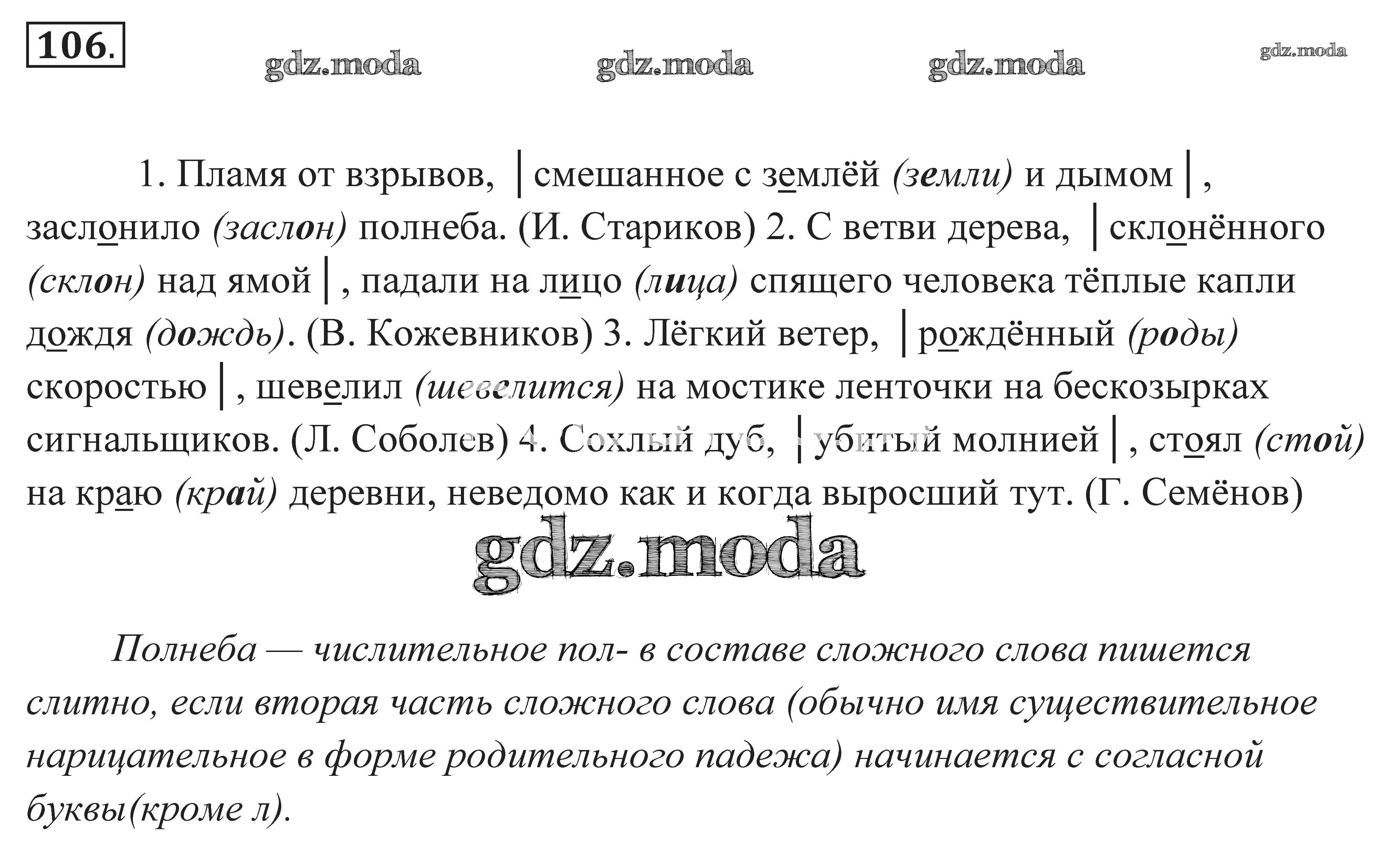 ОТВЕТ на задание № 106 Практика по Русскому языку 7 класс Пименова