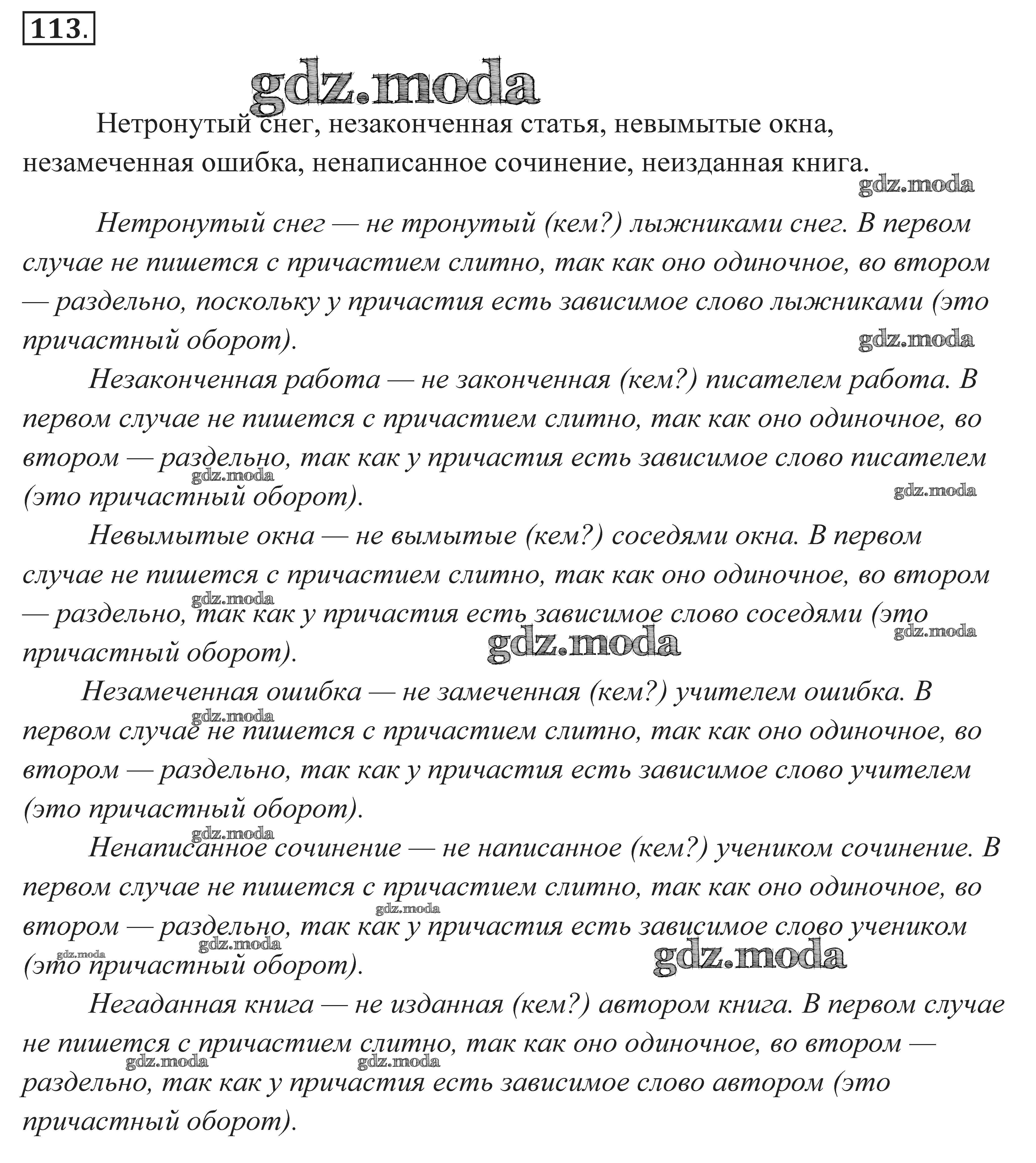ОТВЕТ на задание № 113 Практика по Русскому языку 7 класс Пименова