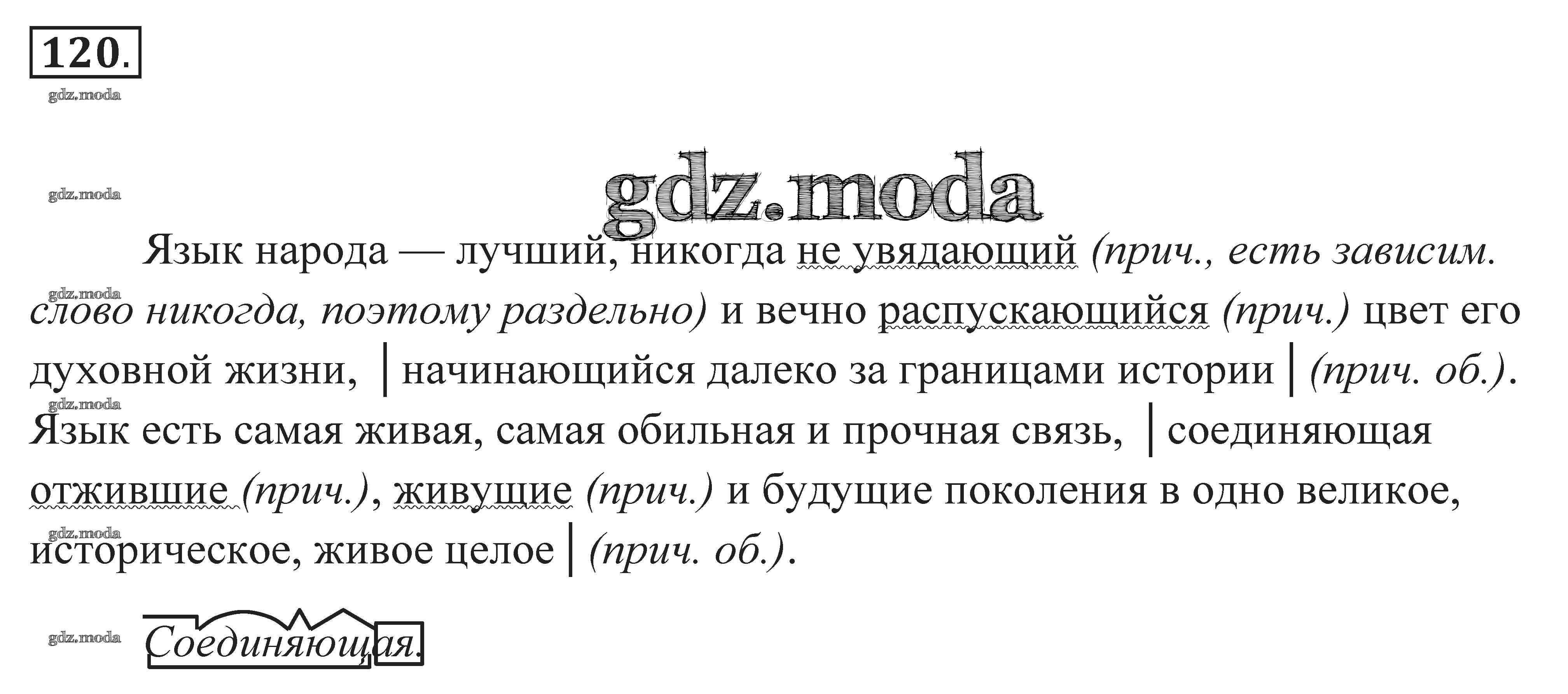 ГДЗ решение к заданию № 120 Русский язык. Практика 7 класс Пименова С.Н. Дрофа 2016 ФГОС бесплатно на гдз.мода!