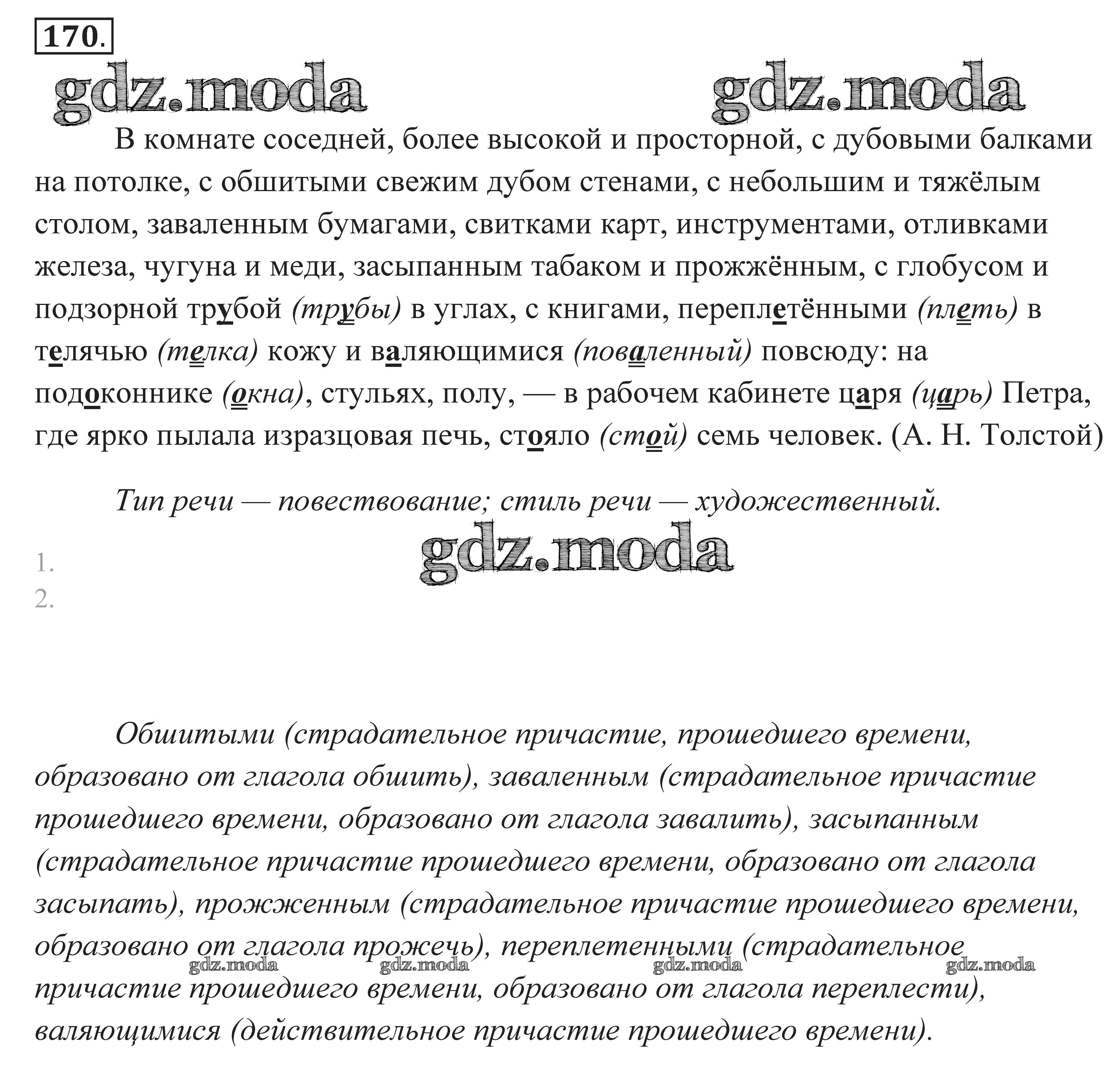 ГДЗ решение к заданию № 170 Русский язык. Практика 7 класс Пименова С.Н. Дрофа 2016 ФГОС бесплатно на гдз.мода!