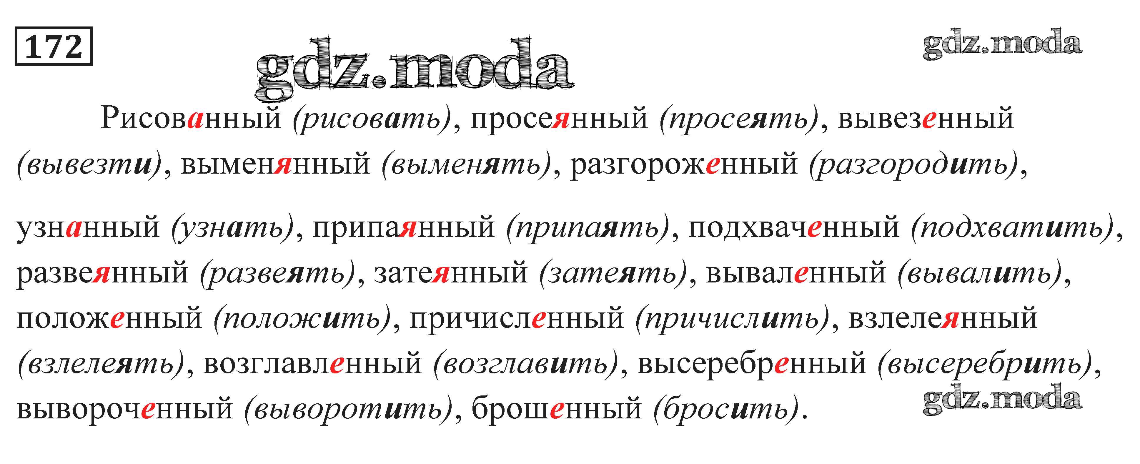 ОТВЕТ на задание № 172 Практика по Русскому языку 7 класс Пименова