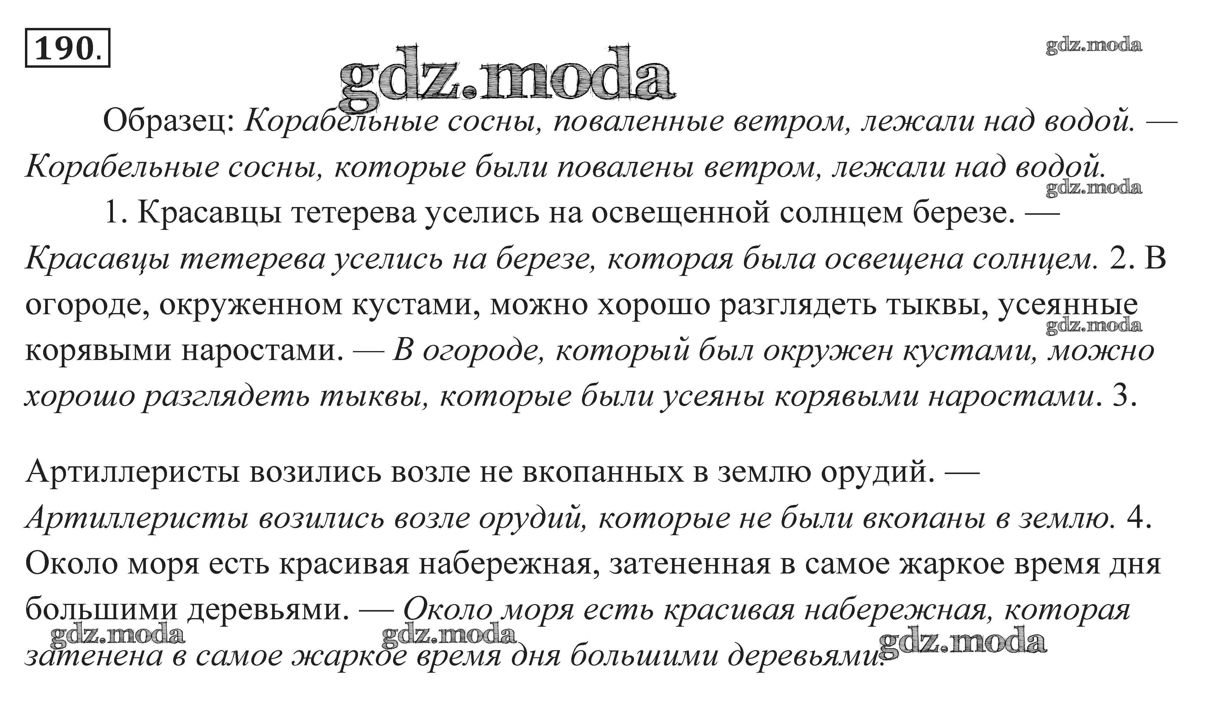 ОТВЕТ на задание № 190 Практика по Русскому языку 7 класс Пименова