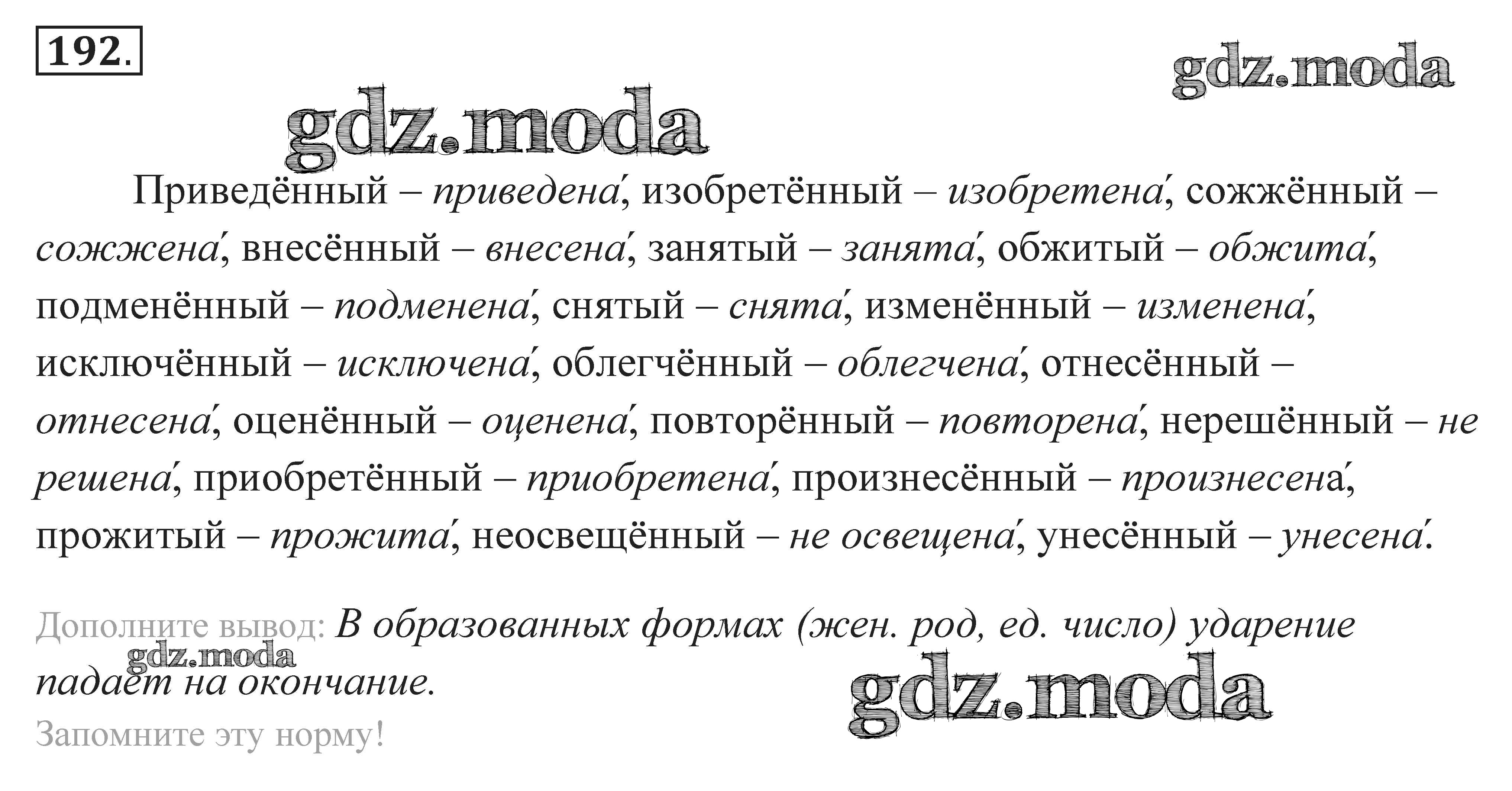 ОТВЕТ на задание № 192 Практика по Русскому языку 7 класс Пименова