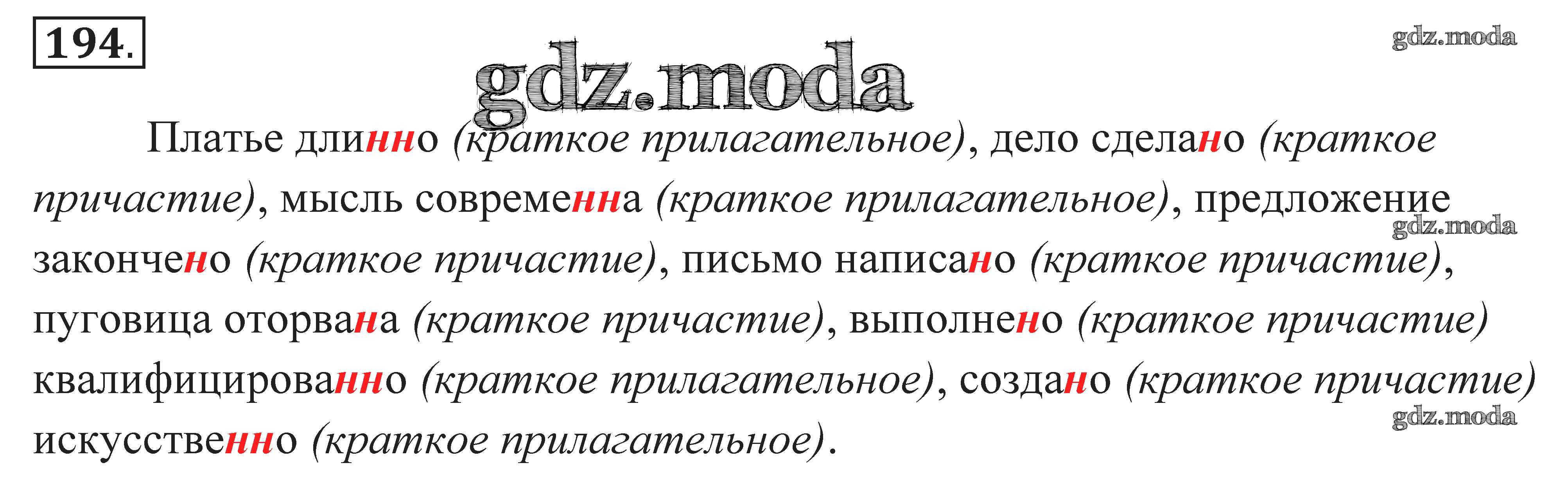 ОТВЕТ на задание № 194 Практика по Русскому языку 7 класс Пименова