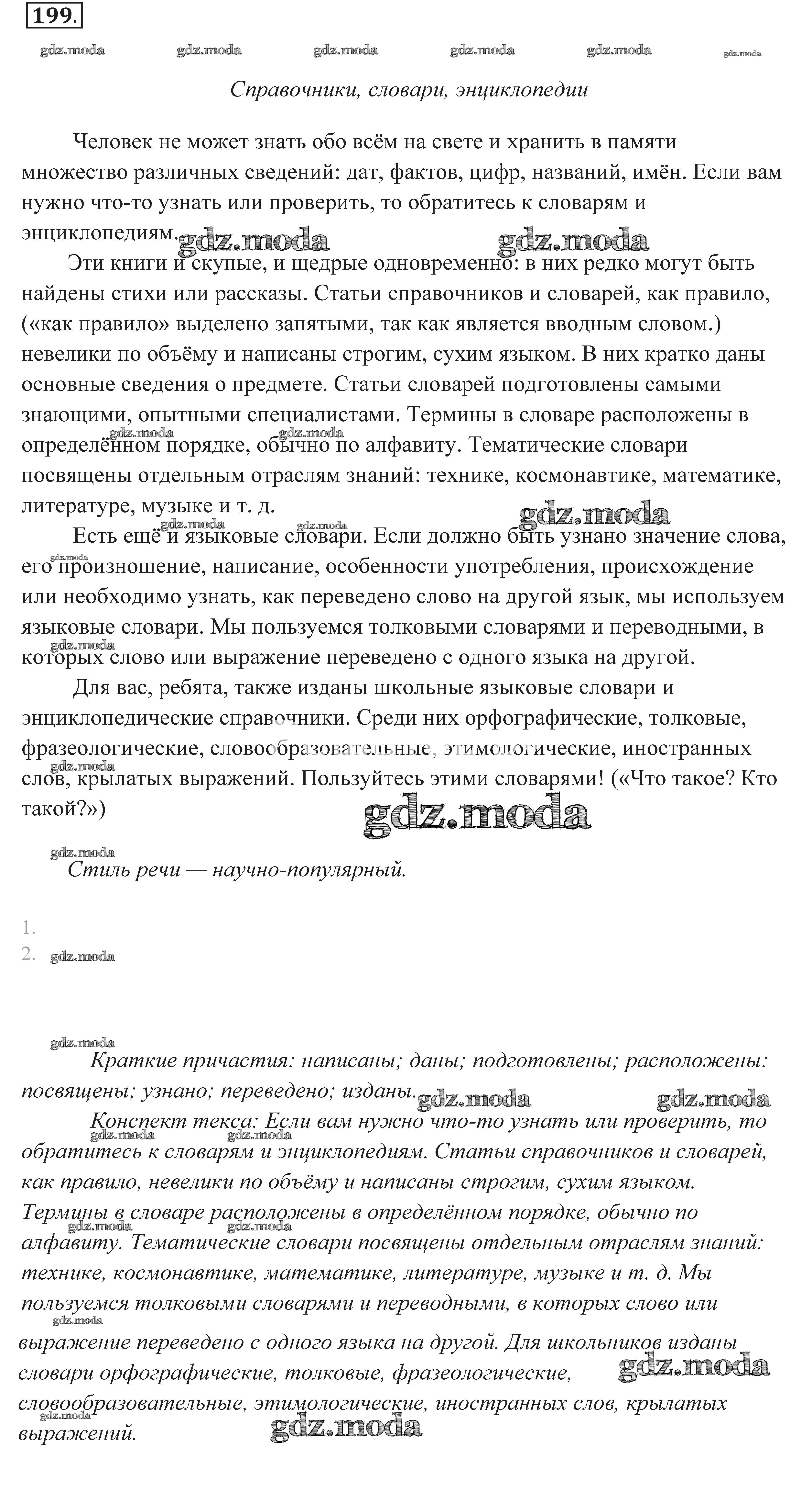 ОТВЕТ на задание № 199 Практика по Русскому языку 7 класс Пименова