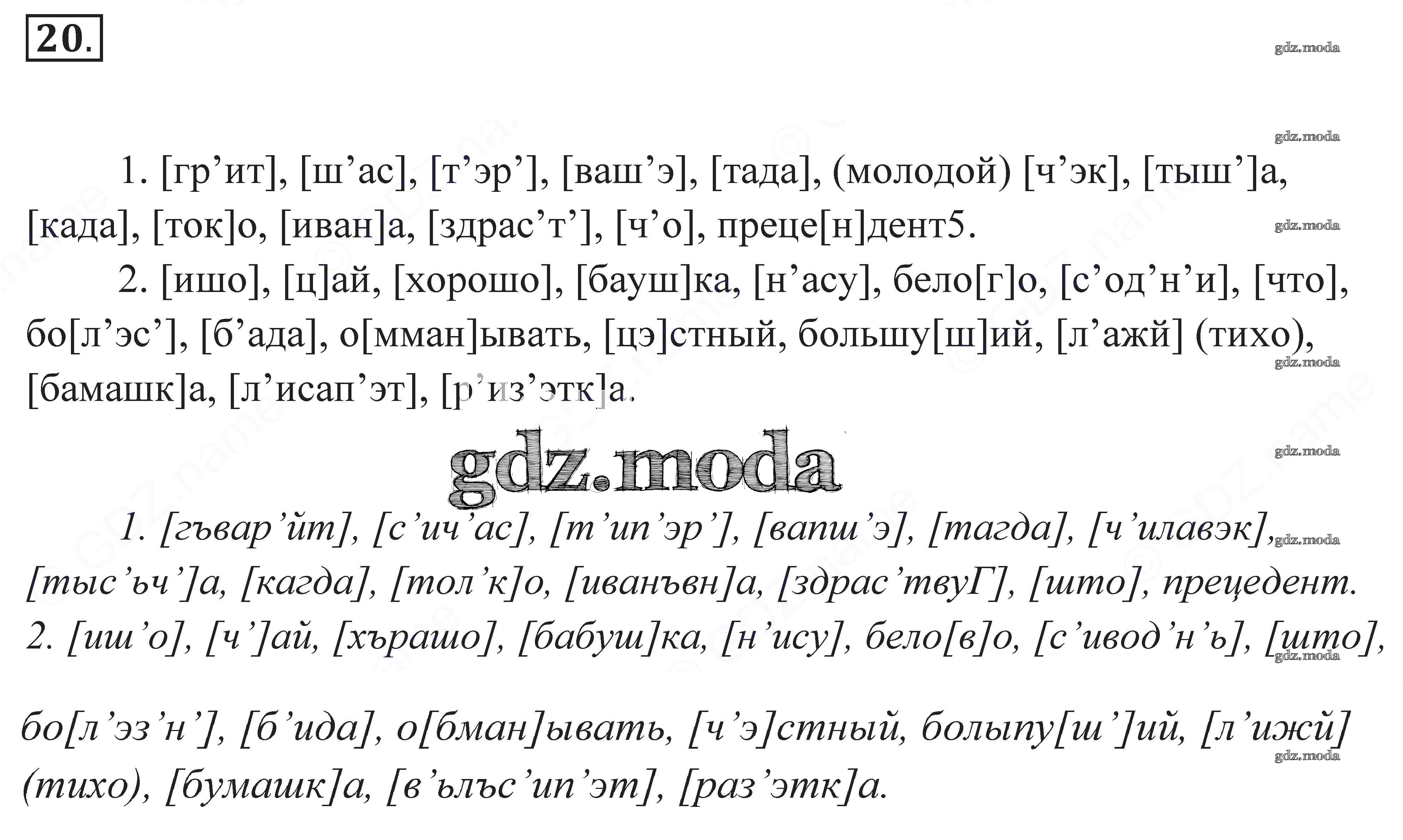 ГДЗ решение к заданию № 20 Русский язык. Практика 7 класс Пименова С.Н. Дрофа 2016 ФГОС бесплатно на гдз.мода!