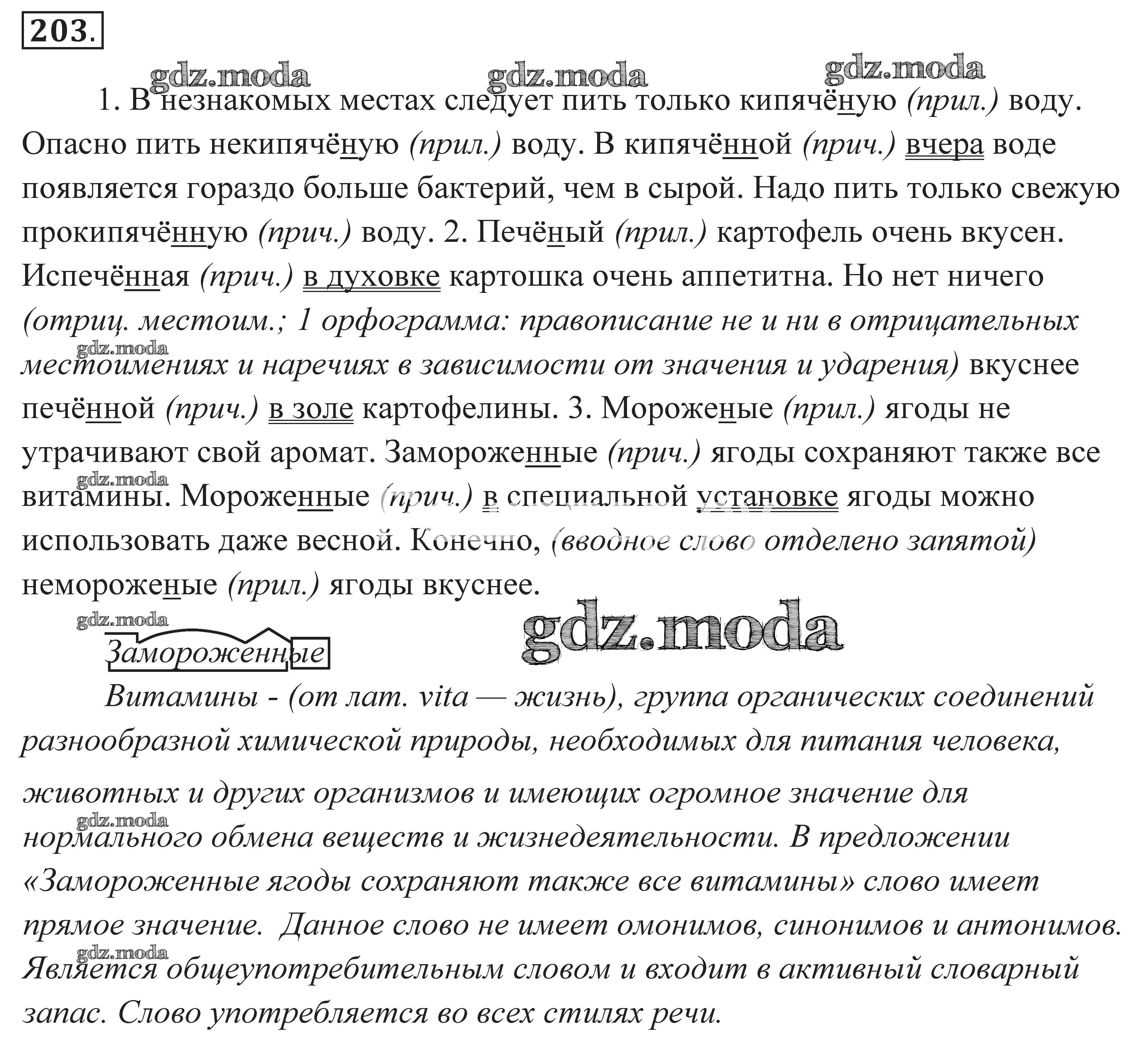 ОТВЕТ на задание № 203 Практика по Русскому языку 7 класс Пименова