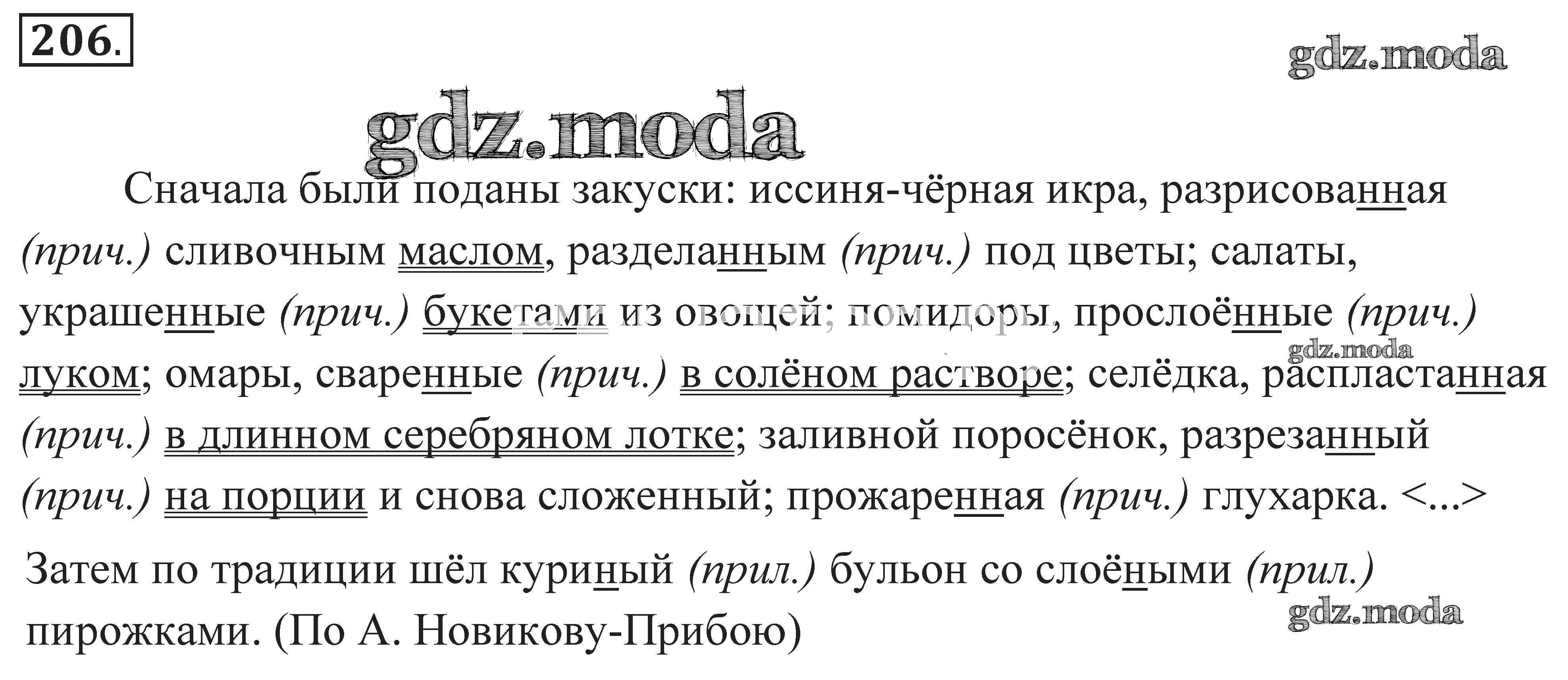 ОТВЕТ на задание № 206 Практика по Русскому языку 7 класс Пименова