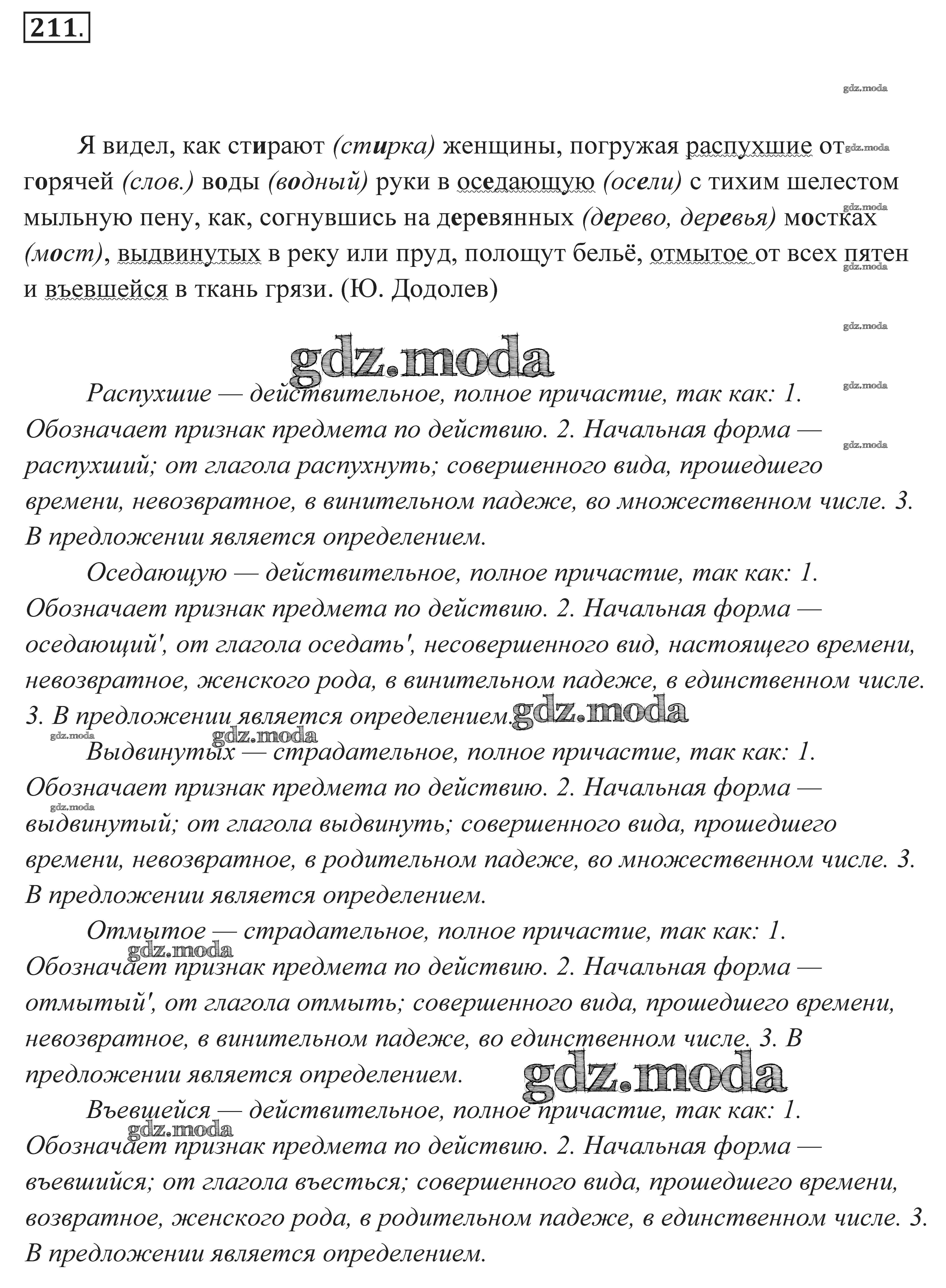 ОТВЕТ на задание № 211 Практика по Русскому языку 7 класс Пименова