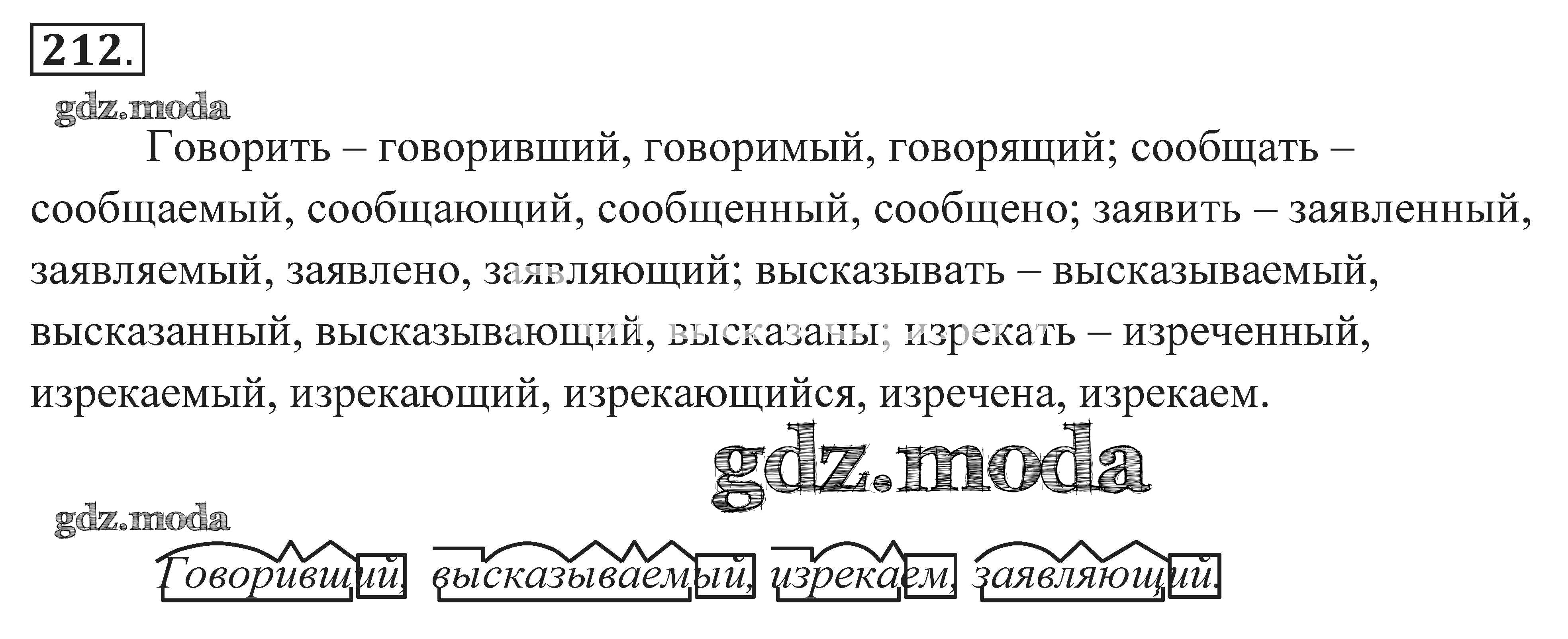 ОТВЕТ на задание № 212 Практика по Русскому языку 7 класс Пименова