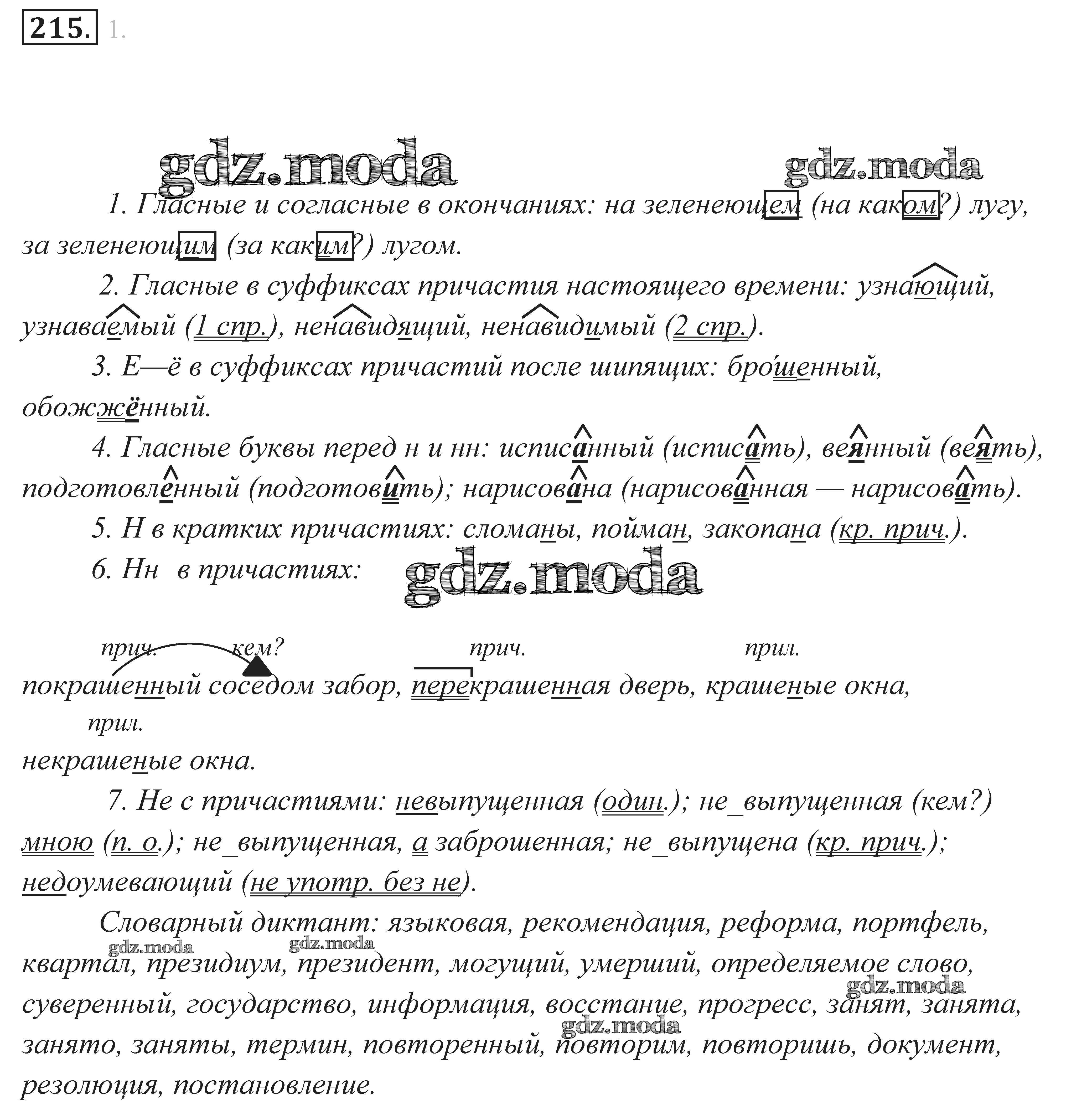 ОТВЕТ на задание № 215 Практика по Русскому языку 7 класс Пименова