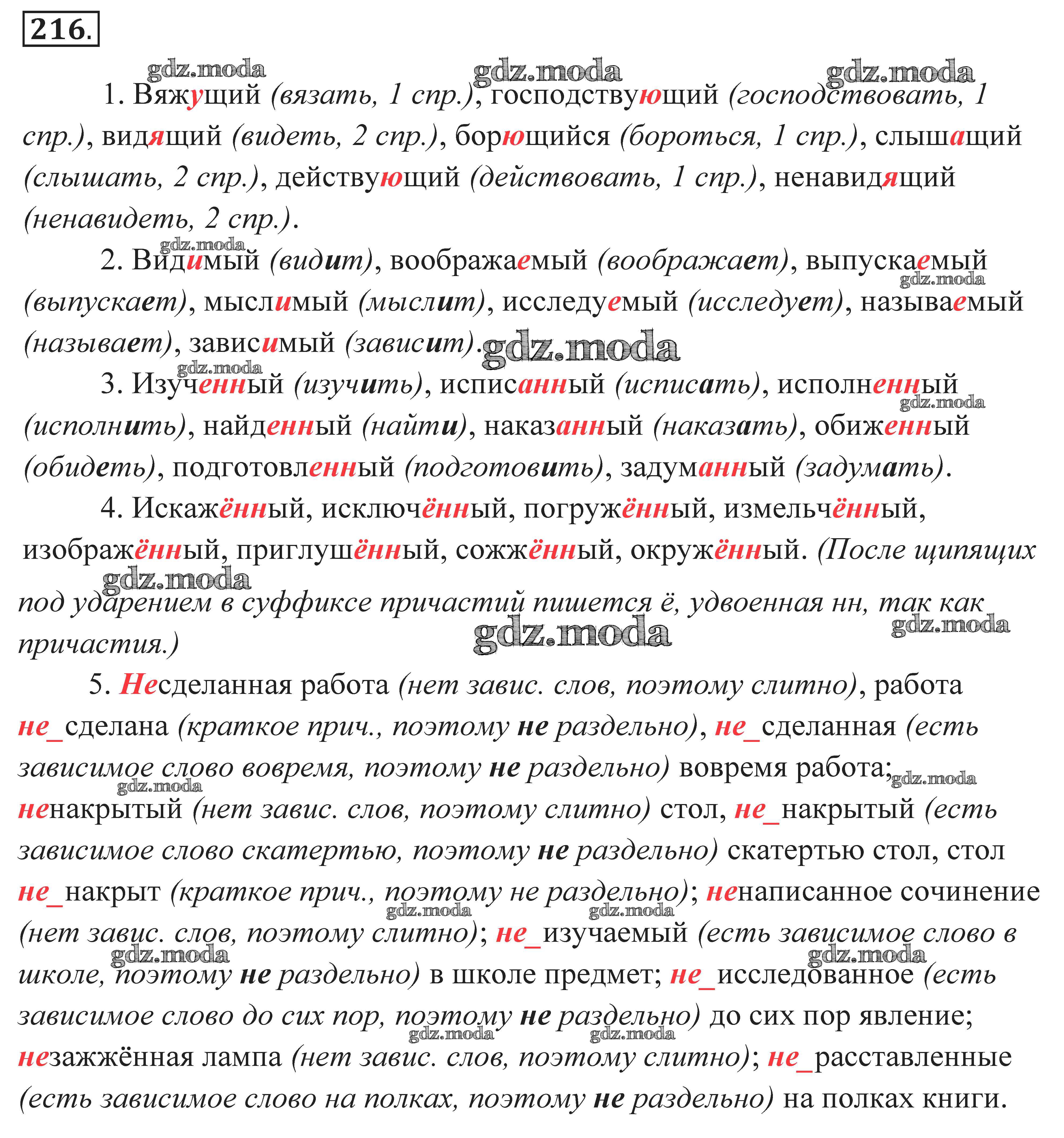 ГДЗ решение к заданию № 216 Русский язык. Практика 7 класс Пименова С.Н. Дрофа 2016 ФГОС бесплатно на гдз.мода!