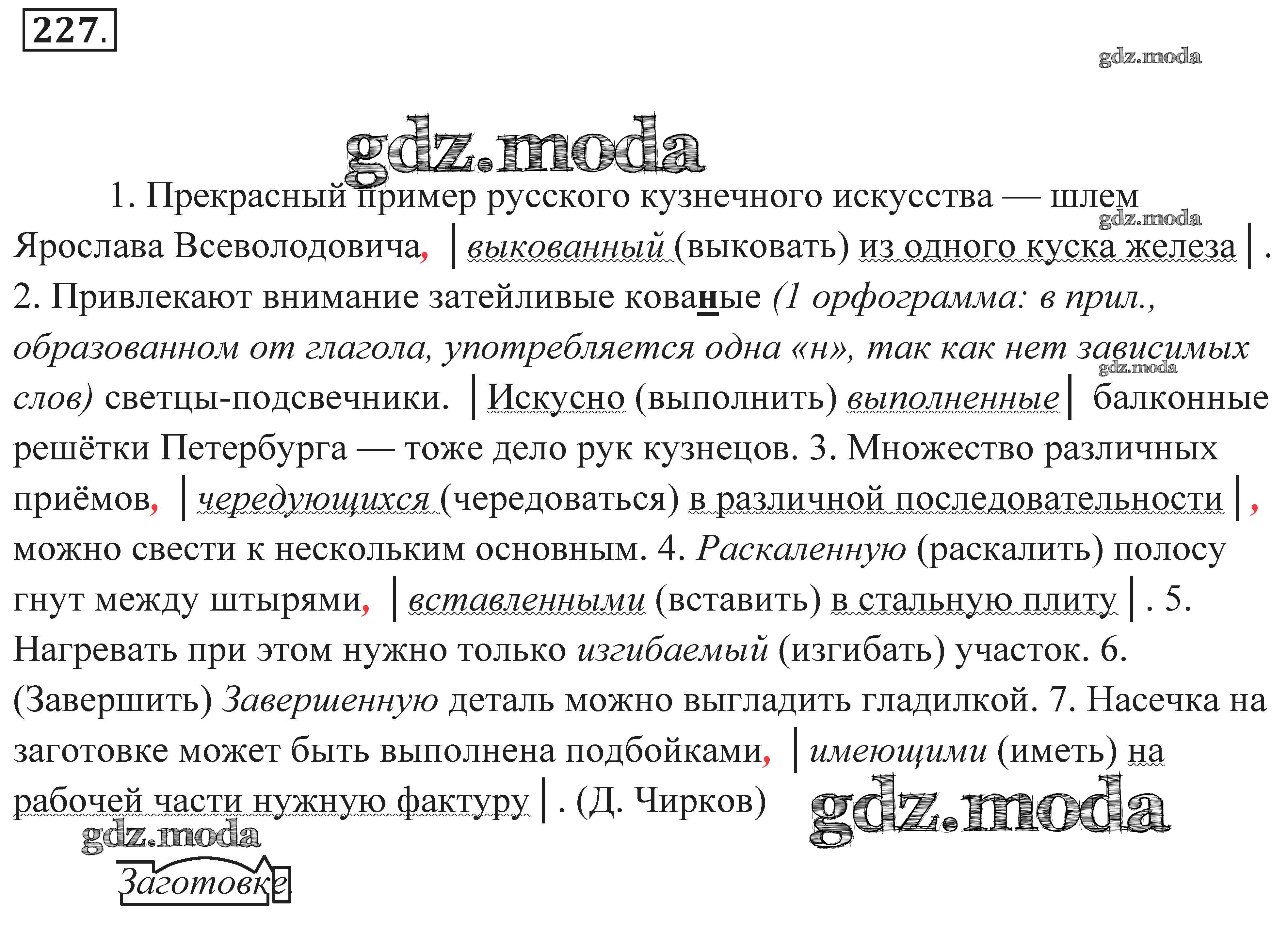 ОТВЕТ на задание № 227 Практика по Русскому языку 7 класс Пименова