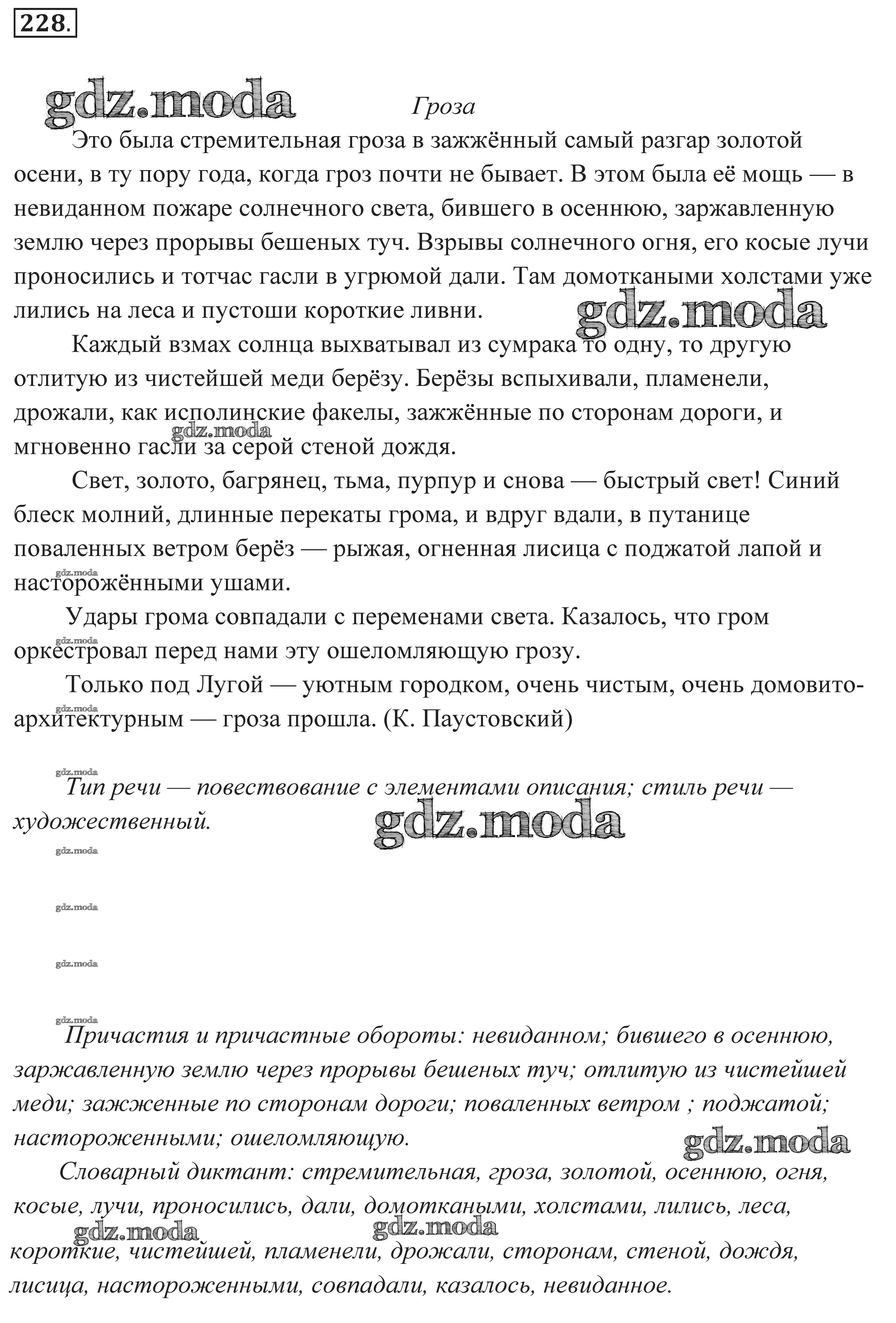 ГДЗ решение к заданию № 228 Русский язык. Практика 7 класс Пименова С.Н. Дрофа 2016 ФГОС бесплатно на гдз.мода!