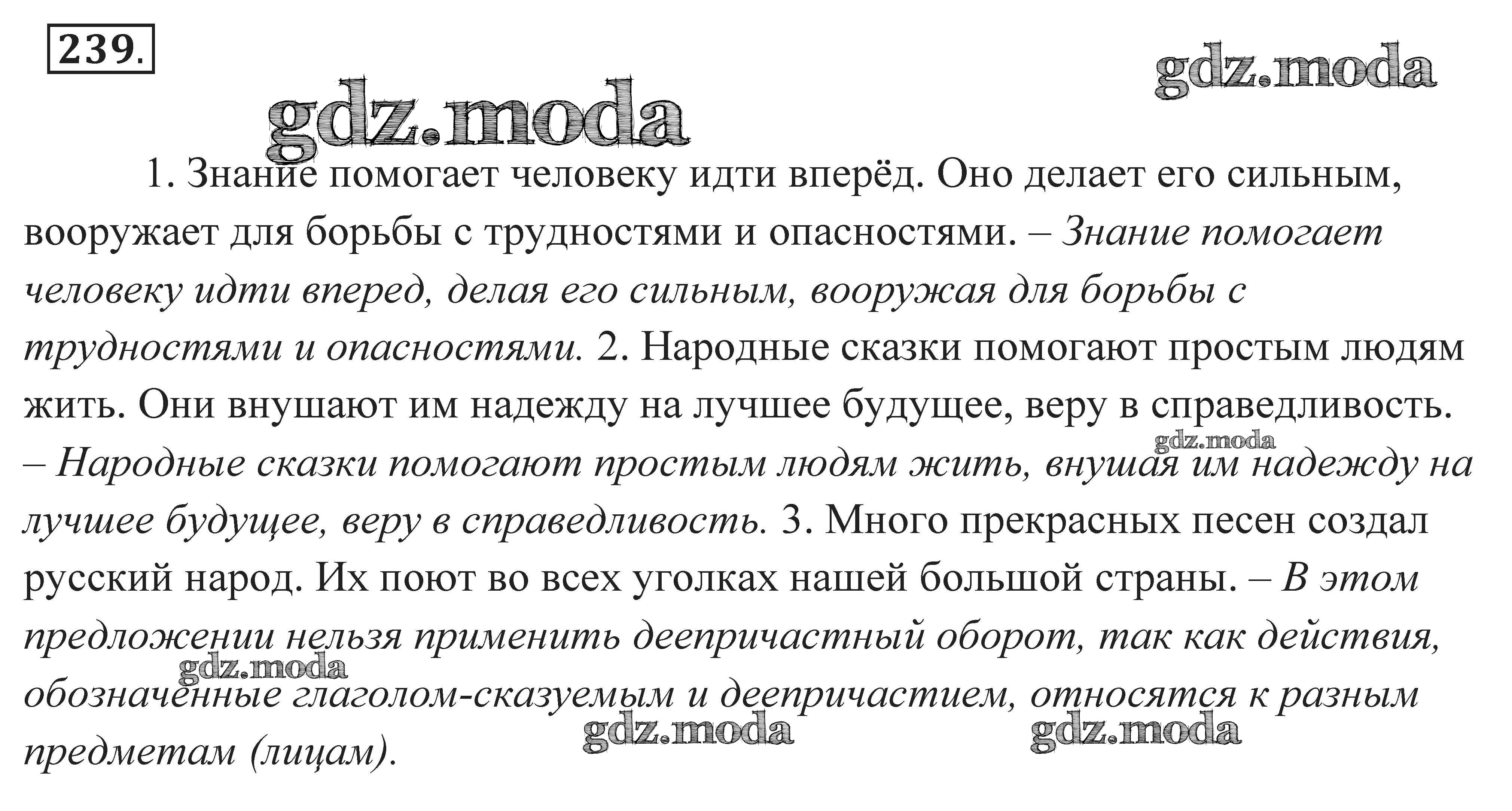 ОТВЕТ на задание № 239 Практика по Русскому языку 7 класс Пименова