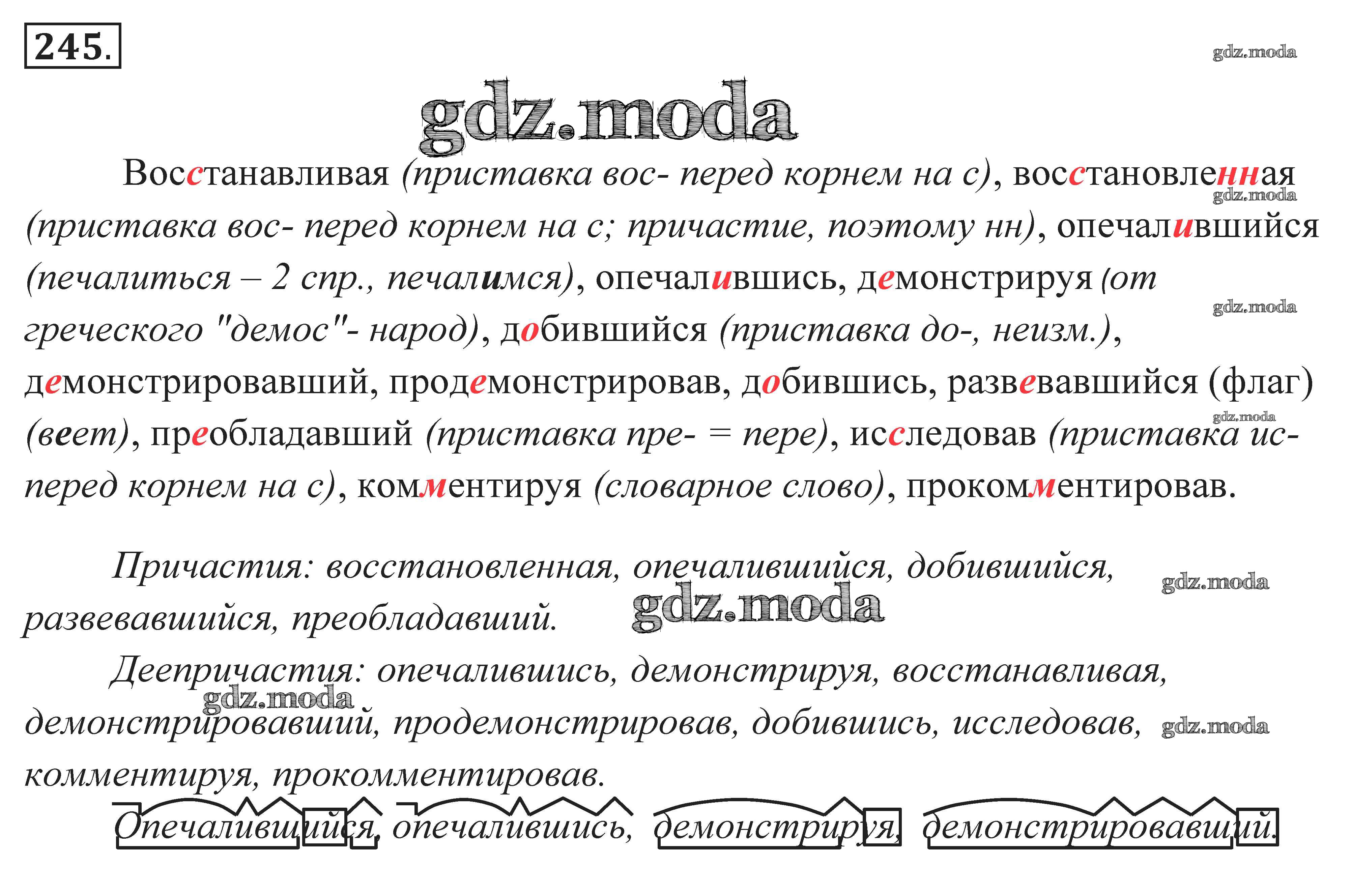ОТВЕТ на задание № 245 Практика по Русскому языку 7 класс Пименова
