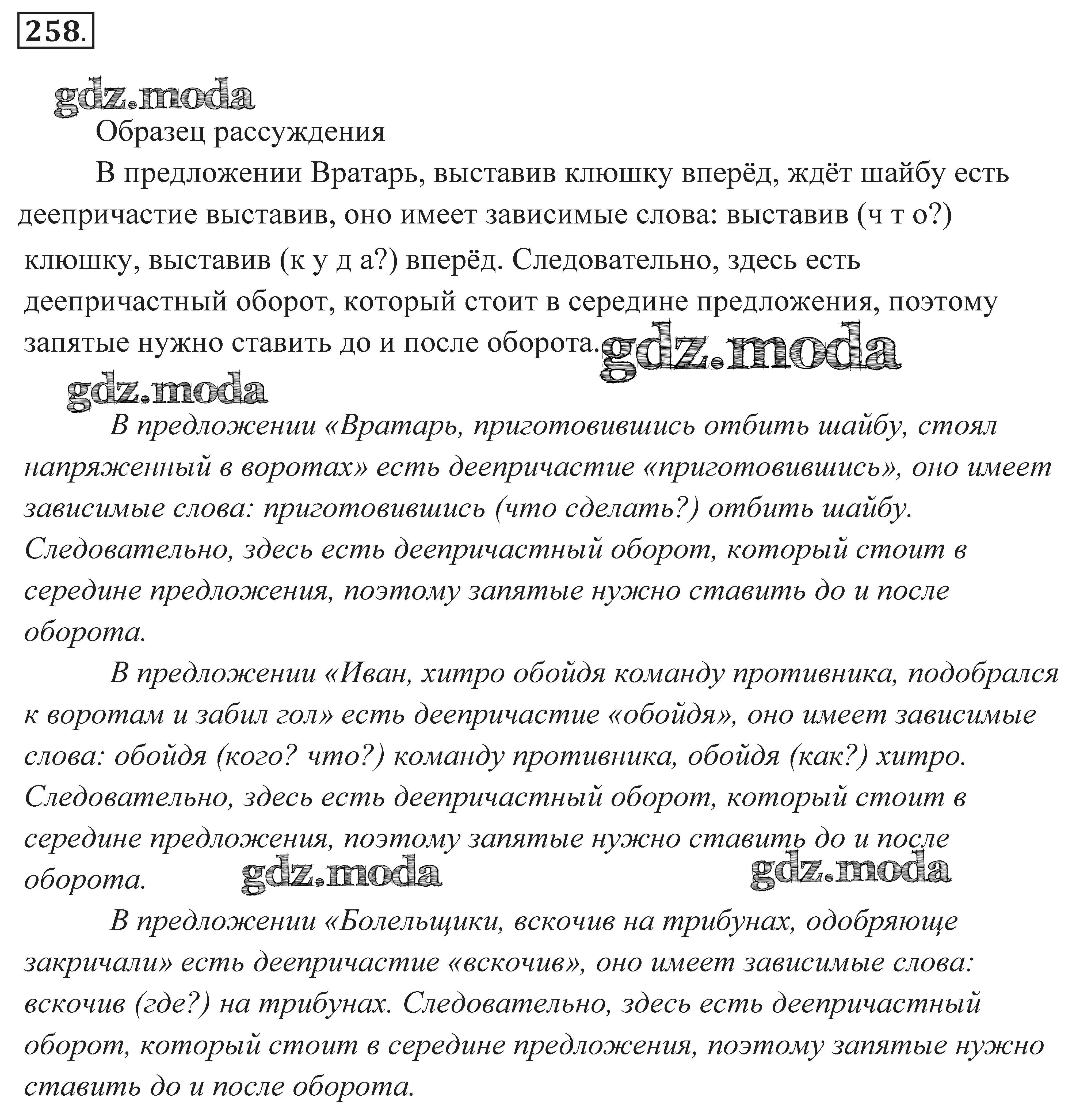 ОТВЕТ на задание № 258 Практика по Русскому языку 7 класс Пименова