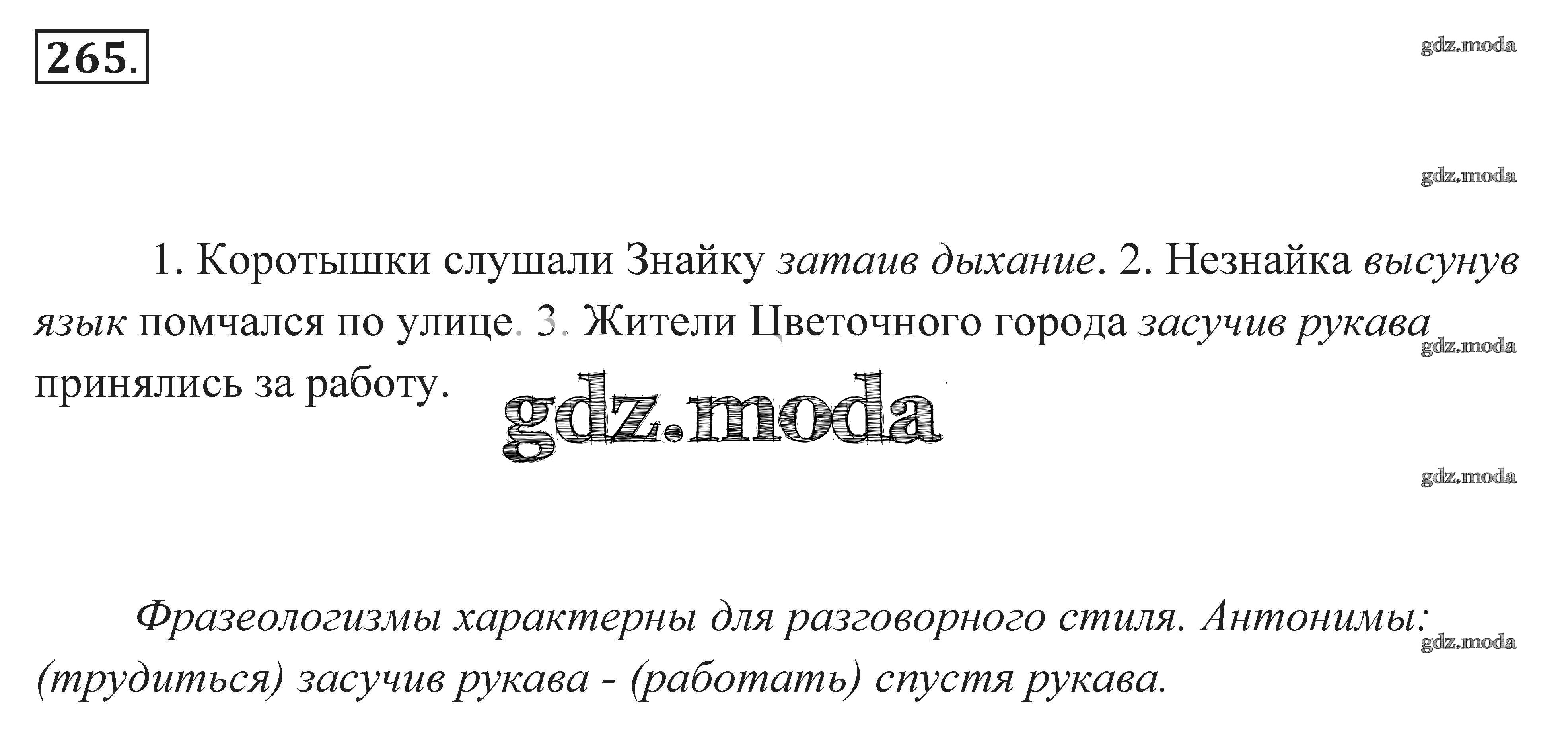 ОТВЕТ на задание № 265 Практика по Русскому языку 7 класс Пименова